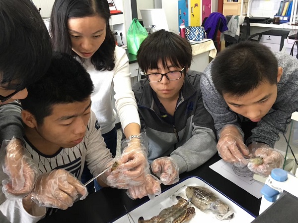 最后,在老师的指导下,同学们解剖了一些海洋动物,了解了他们的生理结构及功能。同学们认真的进行解剖,对自己掌握了一些基本的实验技巧感到非常的兴奋,纷纷交流解剖心得。