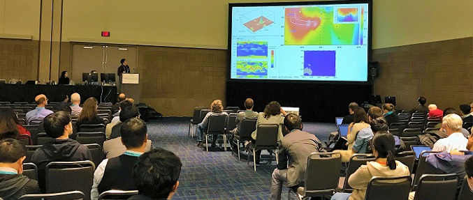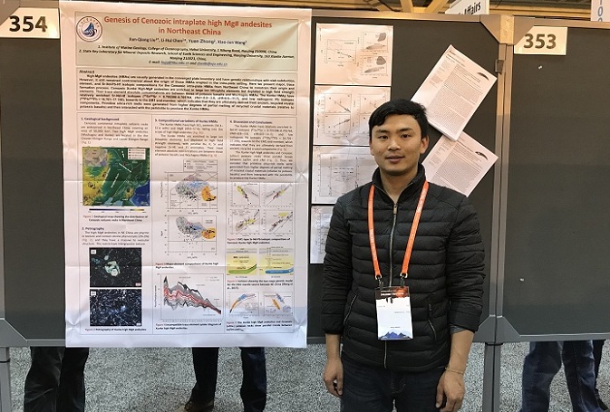 刘建强、张帅博士受邀参加了在美国新奥尔良举办的AGU(American Geophysical Union Fall Meeting,美国地球物理学会年会)2017学术年会。刘建强博士展示了题为“Genesis of Cenozoic intraplate high Mg# andesites in Northeast China”的学术海报,张帅博士做了题为“The SST and sub-SST variation in the core region of the WPWP over the last four glacial cycle”的邀请报告,都得到了国内外专家同行的认可和好评。