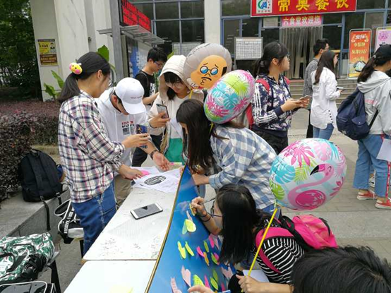 活动现场热闹非凡, 现场人头攒动, 许多同学都迫不及待地写下自己对母亲诚挚的感情, 展板上贴满了对母亲的浓浓感恩。同学们对母亲赤诚的爱溶于其中。许多同学都被这股热情感染,尽管是烈日炎炎之下, 仍抵不住前来书写感恩的同学的脚步。