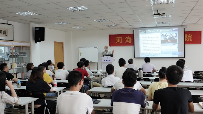 首先,William Perrie教授对如何获得高分辨率的合成孔径雷达图像进行了介绍,相比于光学传感器而言,他指出作为有源传感器的合成孔径雷达更具有海面观测上的优越性。其次,教授对合成孔径雷达的数据在海冰表面融池(melt pond)的监测应用作了进一步的介绍。William Perrie 教授还对波浪与海冰的相互作用,及其在提高海浪预报的作用上进行了详细介绍和讨论。最后,William Perrie 教授对太平洋-北极偶极模态(Pacific-Arctic Dipole)和 用NEMO海洋模式模拟北极海洋环流方面做了详细的介绍。