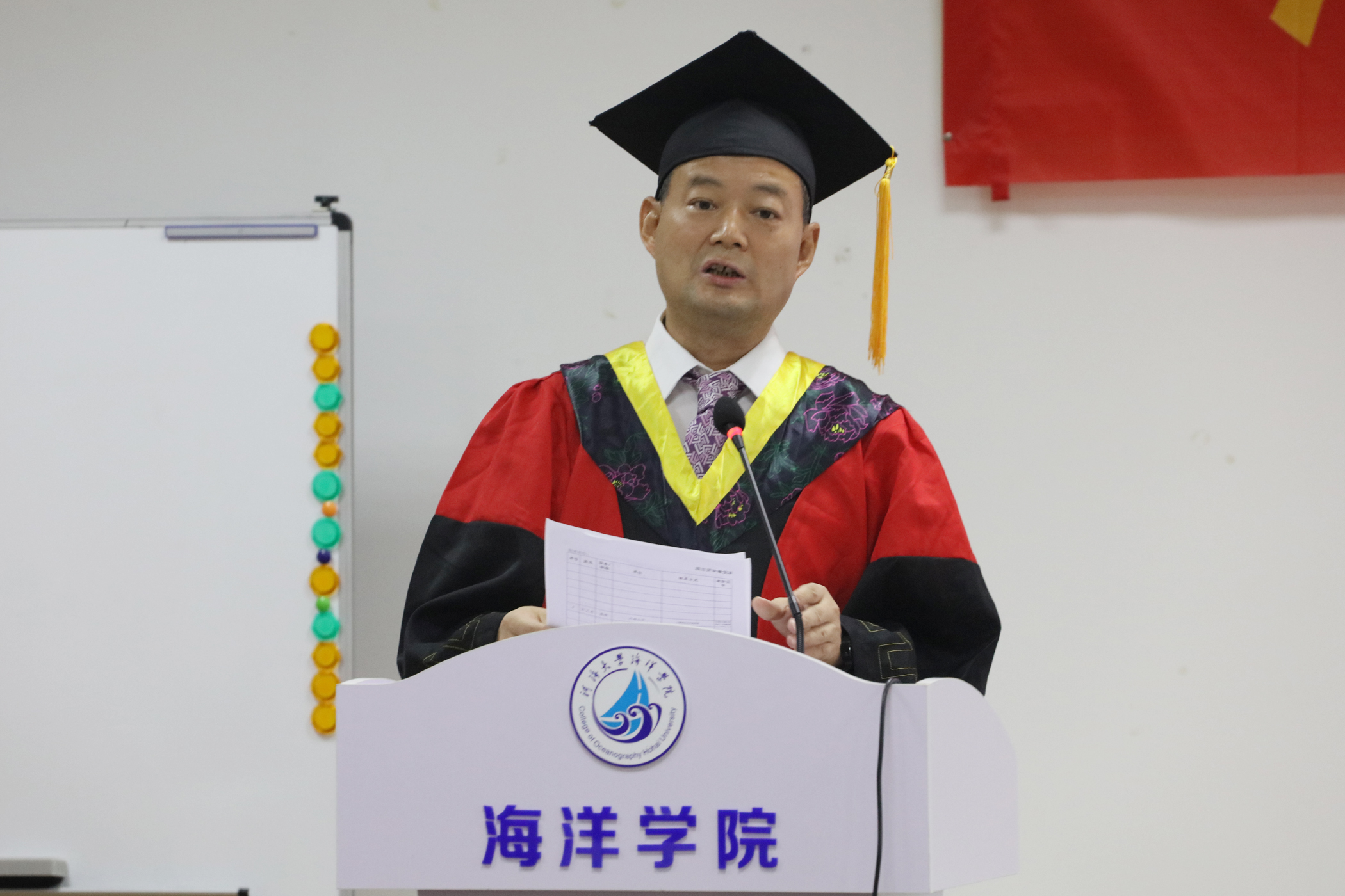 上午8点30分,毕业典礼正式开始。在全体成员奏唱校歌后,海洋院院长齐义泉表达了对2018届毕业生的祝福,言语中充满了对磁力熊 未来发展的憧憬。