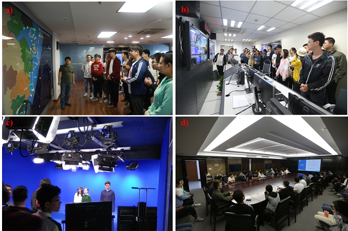 a)听取浙江省海洋观测网的讲解b)和c)参观海况预报演播室;d)听取预报中心构成及业务介绍