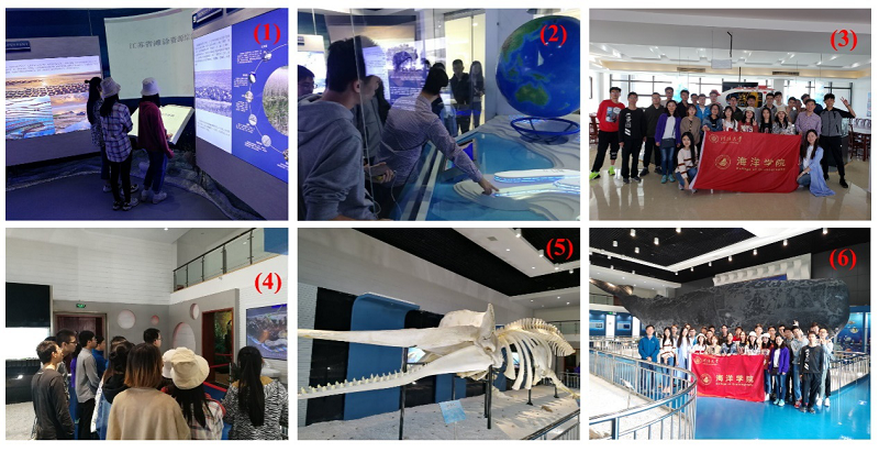 下午同学们参观了位于如东县的江苏滩涂馆和香鲸馆。在滩涂馆,同学们了解了有关滩涂的形成、数量、分布及开发利用,中国历代江苏滩涂的变迁以及滩涂保护等相关内容。在香鲸馆,同学们见到了一只搁浅的抹香鲸标本及其骨骼标本,并通过视频了解了抹香鲸“沙沙”从搁浅到标本制作完成的整个过程。通过近距离观察抹香鲸标本,加深了同学们对其体型以及身体结构的直观认识。