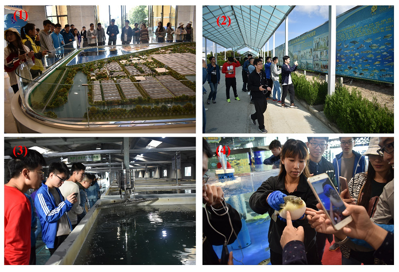 10月21日上午,师生一行人到达本次实习的最后一站——海安中洋集团。在讲解员的带领下,同学们参观了暗纹东方鲀、日本鳗鲡、胭脂鱼、银鳕鱼、中华鲟和扬子鳄等众多名贵特种动物的养殖基地以及水产品加工包装车间。在互动体验区,同学们欣赏到许多漂亮的观赏鱼,还好奇地触摸“生气”的河鲀。通过在中洋集团的参观,同学们系统地了解了水产品的养殖、加工、销售产业链,感受到了海洋生物的开发利用价值。