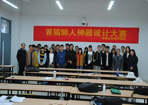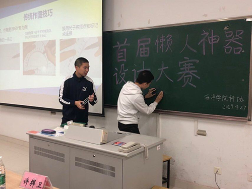 经过近一个月的准备,参赛选手们带着设计成品或方案胸有成竹地来到了答辩现场。看着涉及到生活方方面面的懒人神器,不禁令人感叹,为了“偷懒”,人的智慧可以称得上是无穷无尽:有对总是忘记出门带钥匙的同学格外友善的刷卡开宿舍门系统,有工图绘制神器M.A.P.尺,还有火遍淘宝的切西瓜神器等等。上述只是其中的一小部分。参赛的九个作品都充分展现出了我们河海学子的智慧。