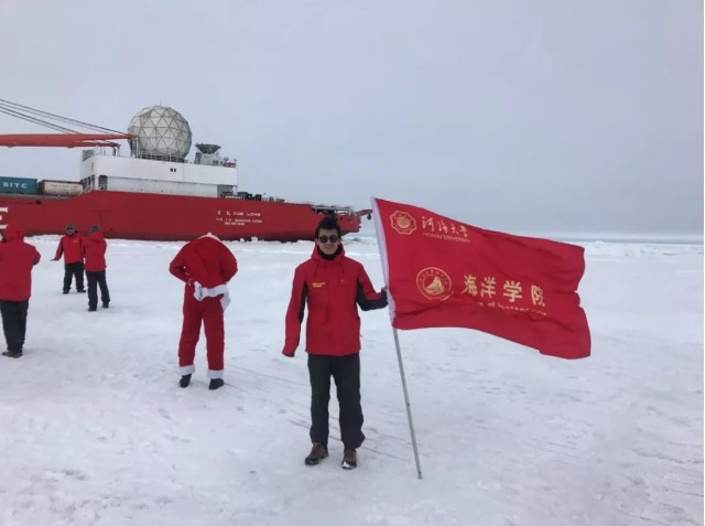 曹老师是物理海洋专业,主要负责CTD的采样工作,本航次计划完成约100个站位的CTD采样工作,任务可谓相当繁重,但北极的水文观测具有十分重要的价值,由于大气温度较低,海洋表面的降温作用明显,北冰洋上层海洋常常能看到明显的逆温特征,北冰洋的上层混合等也明显不同于其它海域。航次工作中,曹老师也协助完成了探空气球的释放、水样采集和分析等工作。本次出海取得的数据对于目前学院极地方向的研究工作有很大的帮助。