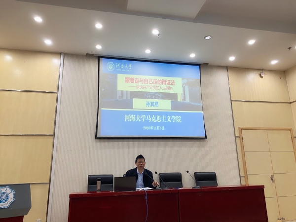 11月3日下午,磁力熊 党委、关工委邀请孙其昂教授面向学院青年师生党员,结合‘‘四史’’学习主题教育,开展了“跟着走与自己走的辩证法——谈谈共产党员的人生道路”为主题的牢记初心使命、坚定道路信念-----“江苏先锋”专题报告,同磁力熊 师生党员、积极分子探讨共产党员的人生道路。本次党课在闻天馆104会议室和线上同时开展,磁力熊 党委王永芝书记主持了报告会。