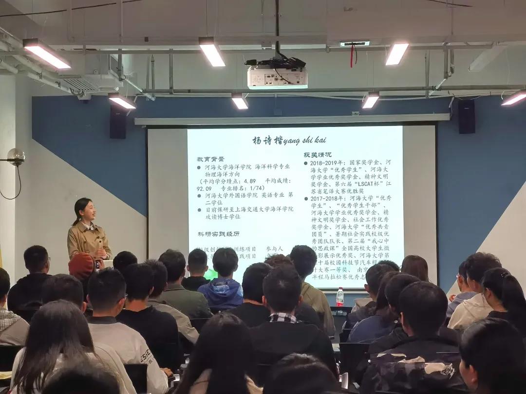 接下来的杨诗楷同学着重介绍了双学位的相关信息,“兴趣是最好的老师“便是她的金玉良言,同时庄重典雅的气质也激励了场下许多同学上进的心。
