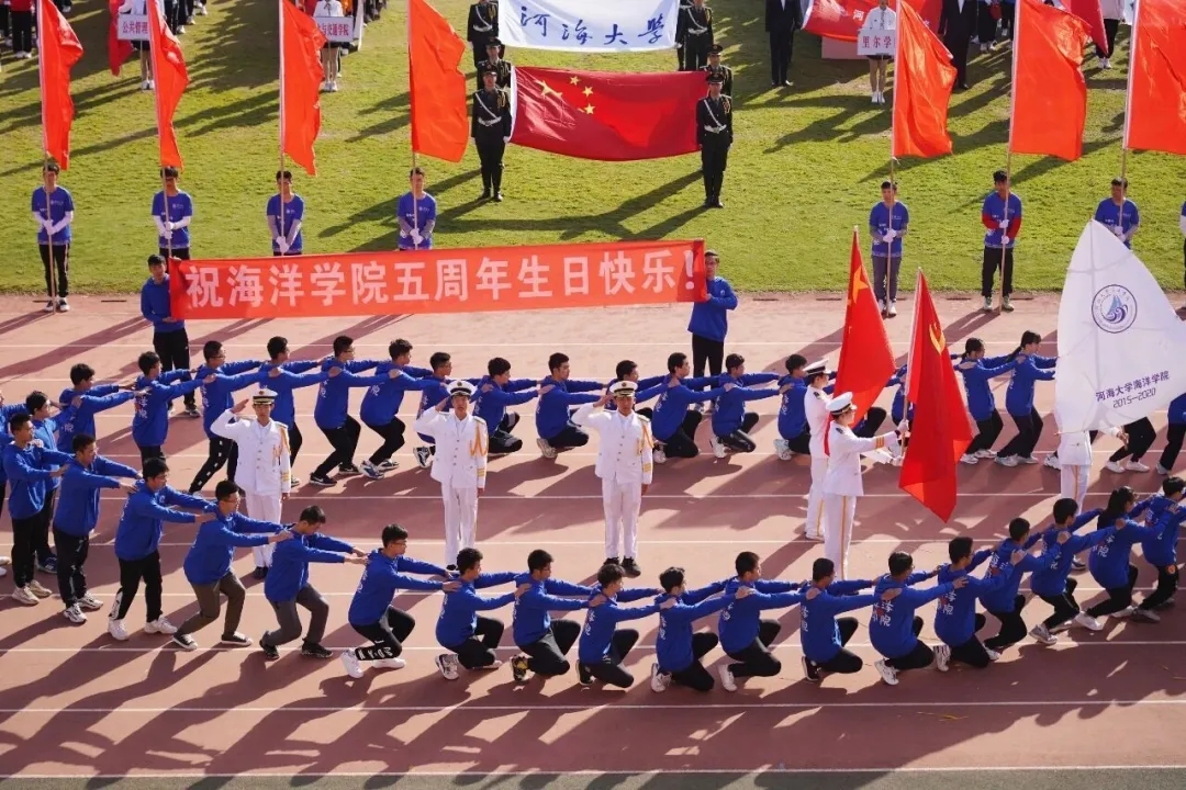 作为压轴表演的方阵,6*10行进的方阵表演时队伍变成一艘帆船形状,整齐划一的手势、响亮的口号“百川东至,万舸争驰。由河向海,奔向未来”,磁力熊 的方阵宛如一首帆船在大海上杨帆启航,体现了海洋院团结努力的精神和扬帆远航的斗志及目标。借运动会开幕式方阵表演之际,方阵一侧举出“祝磁力熊 五周年生日快乐”的横幅,表达了对磁力熊 五周年成立的祝福。最终磁力熊 的入场方阵取得了“最佳入场方阵”的荣誉,这是对磁力熊 所有同学这些天以来努力训练付出的肯定。