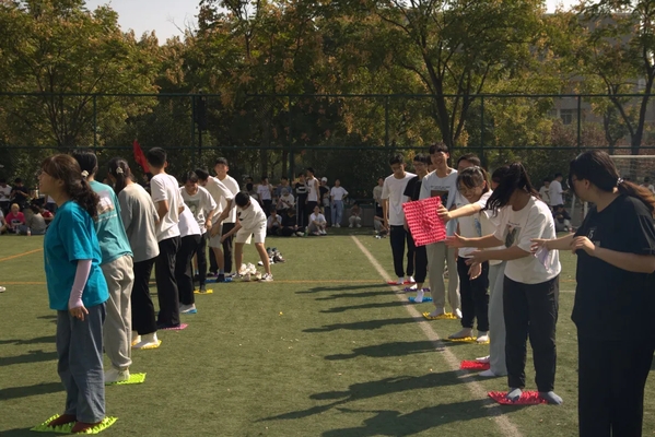 在热身赛(贴膏药)中,同学们个个健步如飞,“贴”带来了刺激与惊喜,不仅活动了身体还活跃了气氛。