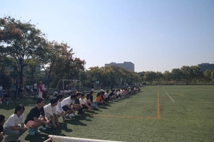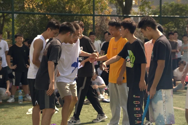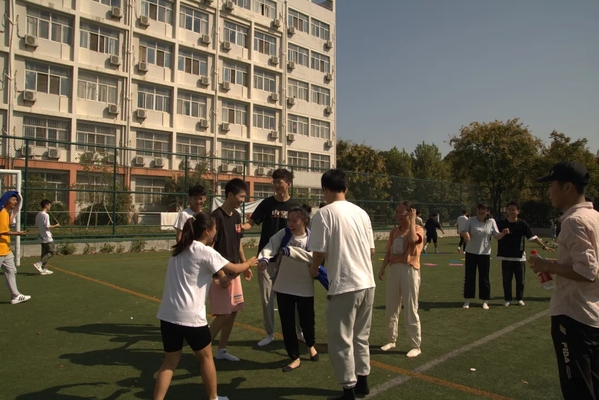 当然,最增进全院感情的活动当属报数聚团,在体育部成员报的数字中,同学们都抛开了初见的腼腆,紧紧的抱在一起,每个人脸上都洋溢着青春的活力。