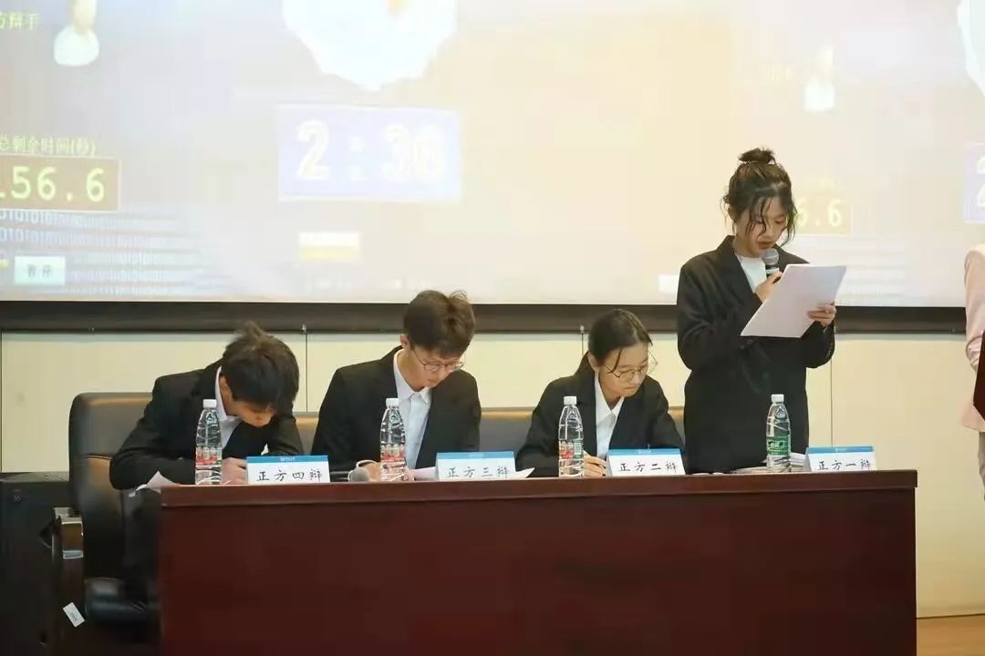 决赛出场辩手:廖紫君、王湛雅、王麒、缪兴城