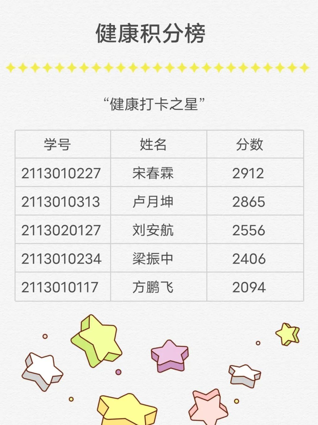 以下为健康积分光荣榜: