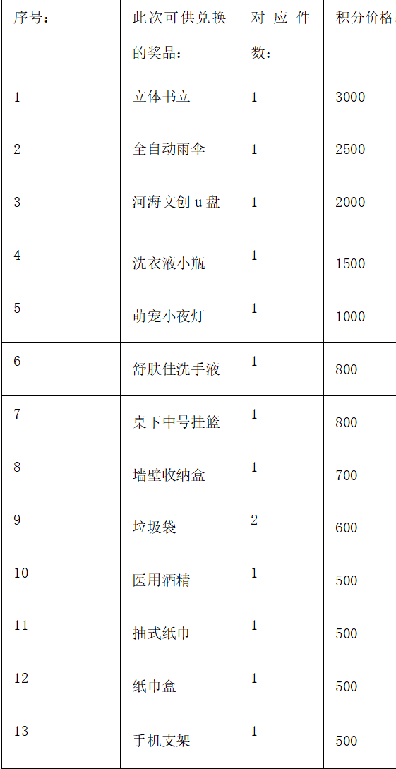 进行奖品兑换方式:在以下评论区进行留言,大家按照喜欢的物品可以进行留言,评论的留言格式:宿舍号+学号+姓名+物品名称+对应物品积分。