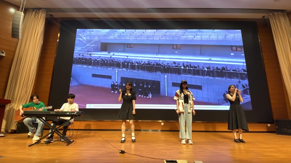 20研究生刘焕宇以一首《守护解放西》向全场观众展现了湘江的赤诚豪爽,热烈点燃舞台。18级本科生陈劭雯、付可欣、李业蓝、吴梦霞带来的动感舞蹈《你没事吧》嗨翻全场。20级博士生胡逍锴、21级博士生王冠以《孤勇者》、听不到》及《凤凰花开的路口》三首金曲串烧,为即将离别的学弟学妹送上深切祝福。小品《甄学家在河海》将海洋学子精湛的模仿表演能力展现地淋漓尽致,甄嬛体金句频出,引得观众捧腹大笑。经过魔性改编的《两只老虎》舞蹈,为大家带来了全新的演绎形式,将童年的欢快与热烈的青春融为一体。器乐交汇,金声玉振,余音绕梁,器乐队一曲悠扬婉转的《样》为观众带来听觉上的盛宴。