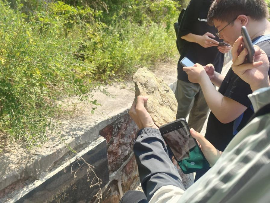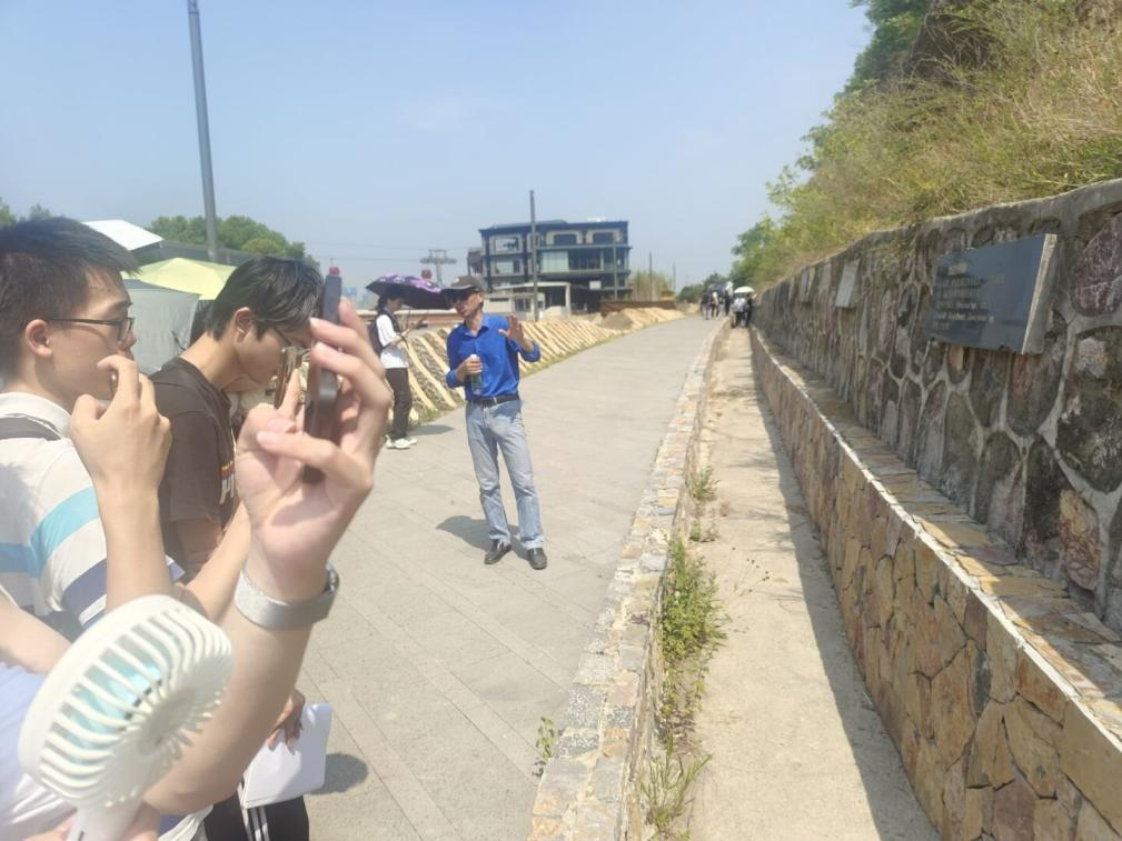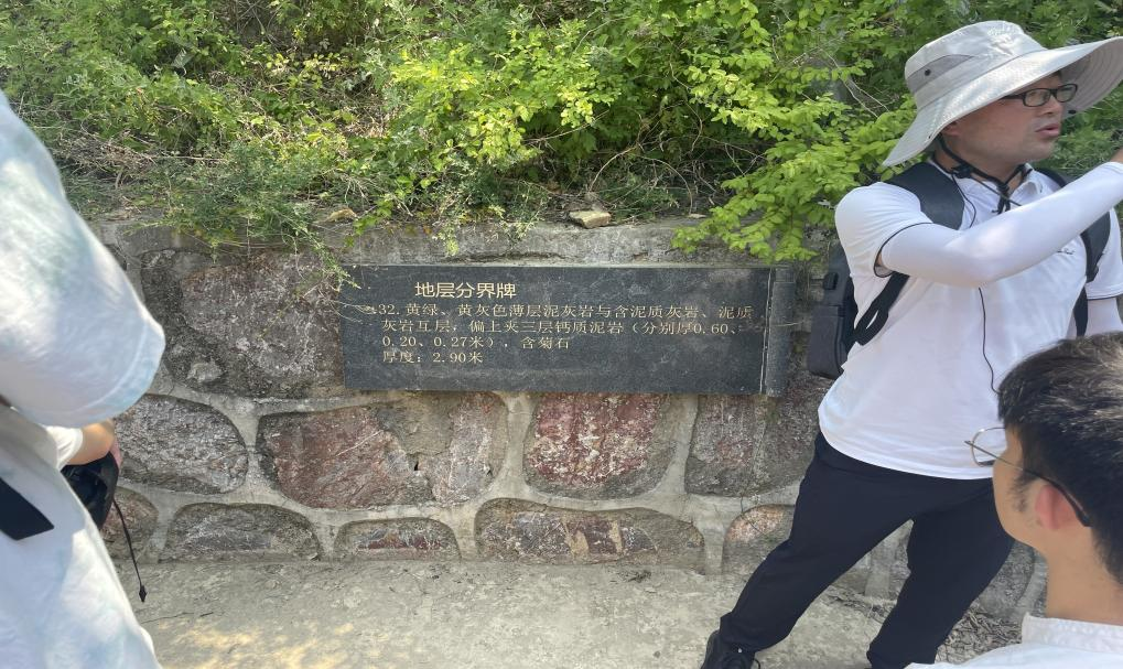 6月18日8:00,同学们准时在集合地点登车,约40分钟的车程后,同学们来到了第一处实习地点——南京园博园。进入园博园前,老师向各位同学仔细介绍了本次实践的基本要求和注意事项,让同学们对本次实践的目的和游览重点有了更清晰的了解。在游览园博园时,同学们近距离地观察了从海洋中沉积下来的石灰岩岩层,在老师的细致讲解中了解了世界古大陆的演变与发展、地质的演变过程。同学们听的津津有味,并提出自己的问题与观点,在问与答中,对地质知识的兴趣也愈发地浓厚。尽管天气炎热,大家依旧兴趣高涨,在集体讲解结束后,同学们三五成群,继续游览了园博园的一些其他景观。