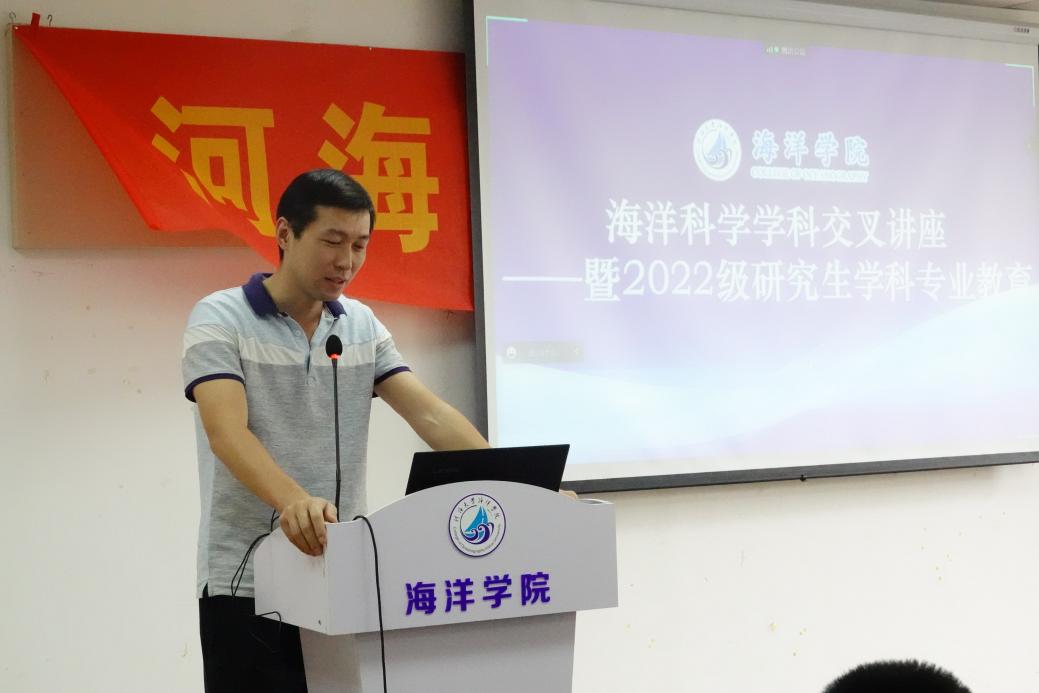 9月8日下午,磁力熊 海洋科学学科交叉讲座——暨2022级研究生学科专业教育在电气馆507会议室如期举行。海洋动力与环境研究所曹海锦老师、姜龙老师,海洋地质研究所张帅老师、研究生辅导员刘彩英及2022级全体研究生新生参加此次会议,磁力熊 部分教师、研究生及本科生在线上同步参与。本次讲座由磁力熊 副院长冯涛主持。