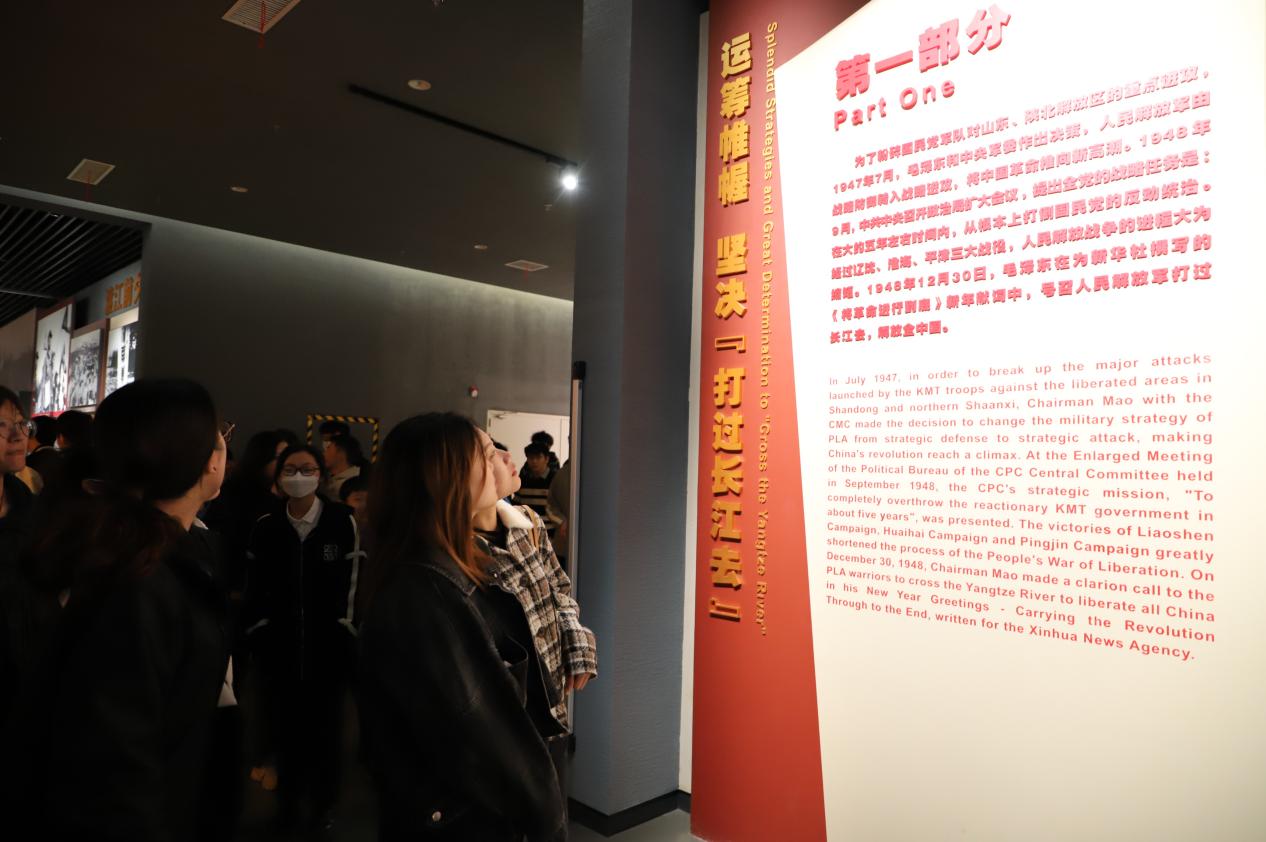 渡江战役的胜利和南京解放,是中国共产党领导人民书写的伟大革命的恢宏篇章,渡江战役蕴含的革命精神与红色精神在今天仍旧意义非凡。渡江战役胜利70多年,“将革命进行到底”的渡江精神历久弥新,是激励莘莘学子勇往直前,不断推进中国特色社会主义伟大事业,实现中华民族伟大复兴的强大动力。