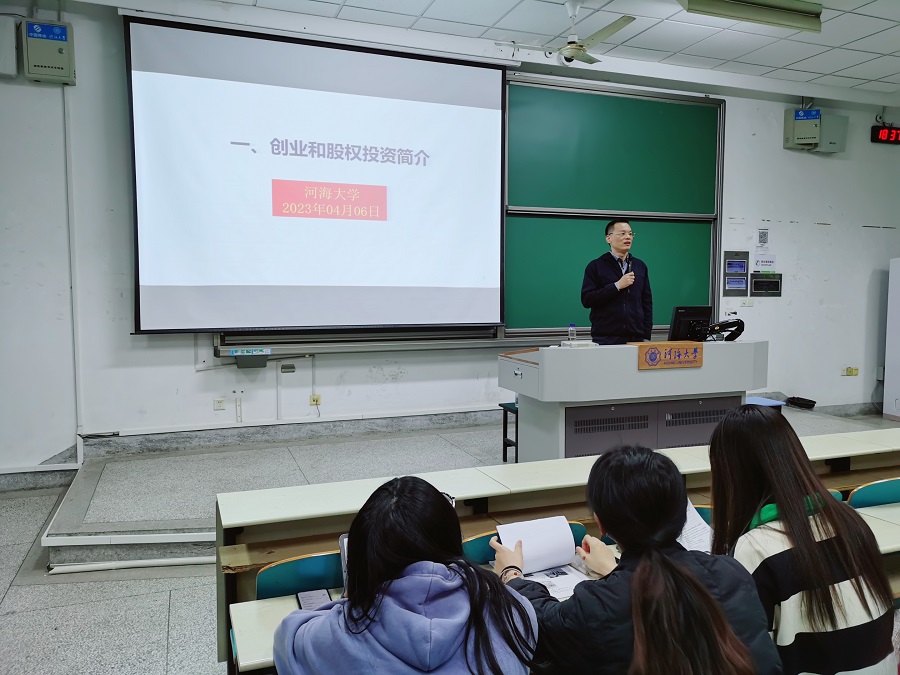 2023年4月6日晚,江苏省沿海开发投资公司副总经理周勇胜博士受磁力熊 邀请走进河海,为同学们开展了一堂关于创业和股权投资的主题报告。