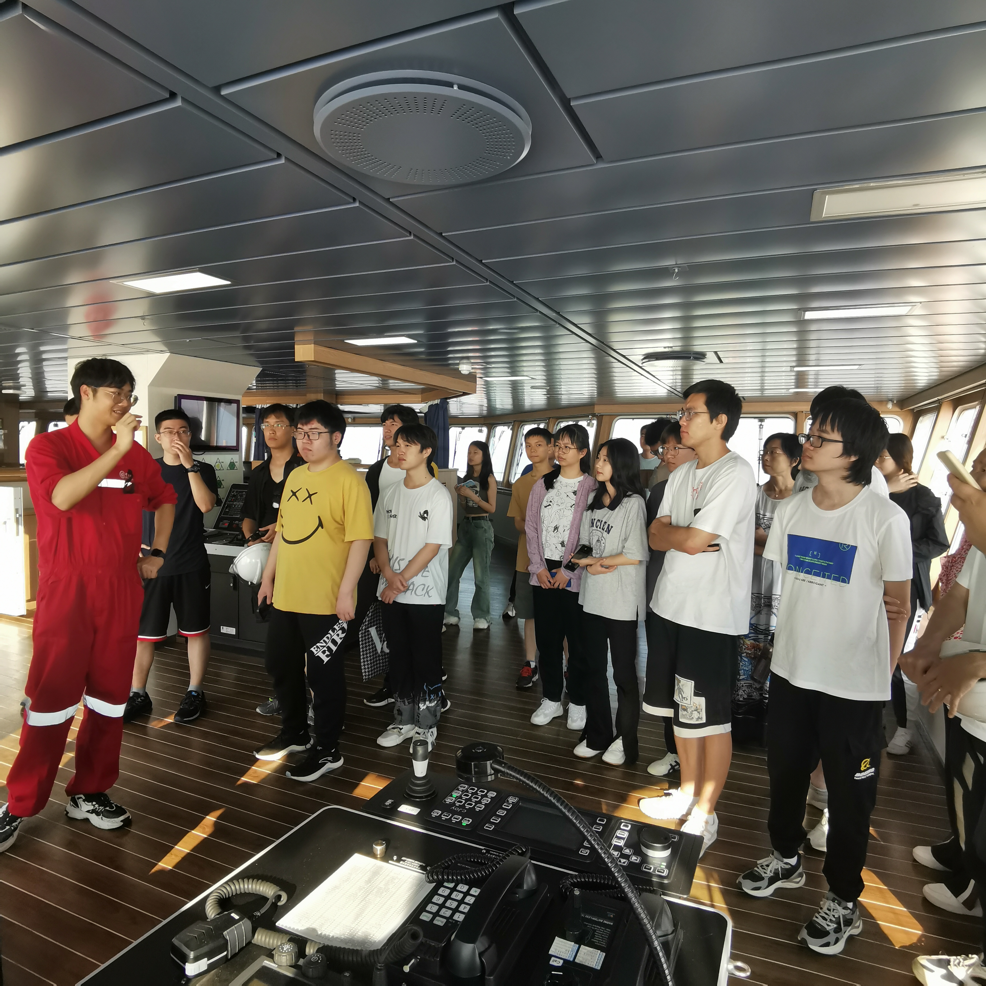 7月6日上午9点,磁力熊 师生在上海崇明岛由随船老师安排,有序地登上了“中山大学”号科考船。中山大学及相关单位高度重视本次海上科考实习,航行前董文杰(首席科学家)、于卫东(科考中心主任)、蓝明华(船长)、常越(领队)、崔廷伟(执行首席)等人为参航师生召开航次动员大会,介绍本次海上实习背景、注意事项等。下午,科考船在船员紧锣密鼓的安排下驶出停泊港口,船队三副为参航师生进行了系统的安全培训,随后探测部工作人员带领参航师生分组参观“中山大学”号各层设施、实验室和驾驶室并介绍船上相关仪器设备,让大家近距离感受到了“中山大学”号科考船的先进以及船上工作人员的热情。