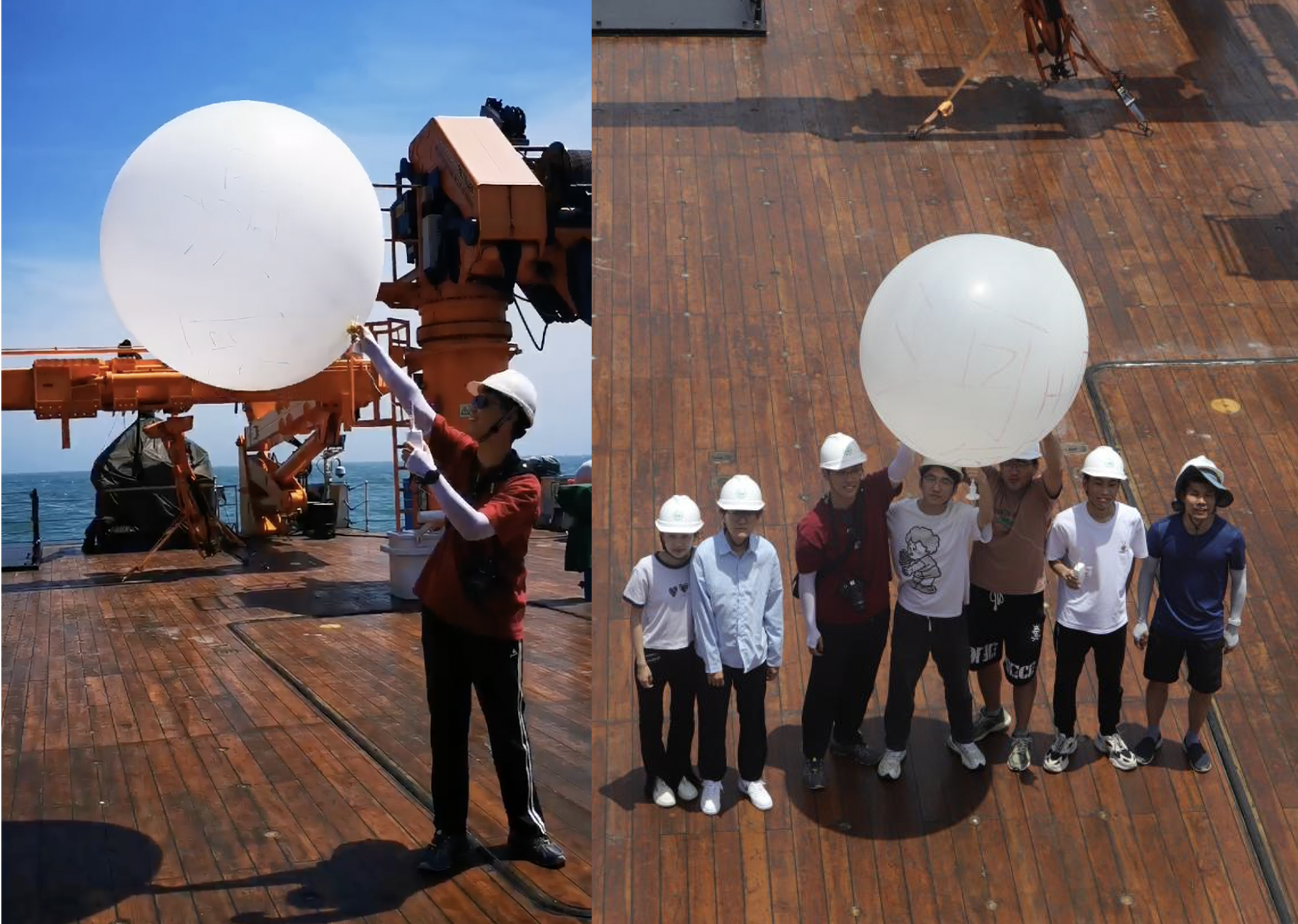 7月7号上午,“中山大学”号航行至台州沿岸海域站位,当天天气海况较差,遭遇了7级阵风,8级大浪,但磁力熊 六名学生经受住了大风大浪的考验,克服了晕船的不适,顺利完成了海洋气象观测实习内容。韩博副教授介绍探空仪器使用方式后,磁力熊 师生成功放飞探空气球,并在实验室实时读取传感器得到海上不同高度温度、气压、风速、空气湿度等海洋气象数据。随后在周海涛工程师的介绍下,了解学习了微波辐射计、激光风廓线雷达等气象观测仪器的使用及数据读取方式。在完成当天科考作业后,全体船员及参航师生进行了安全演习,熟悉了各项救生装置的使用及位置。