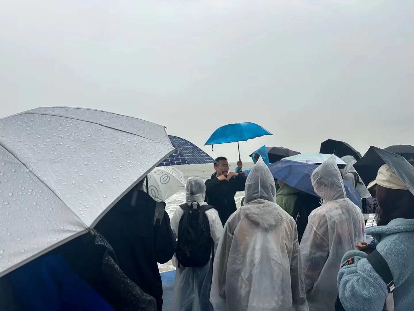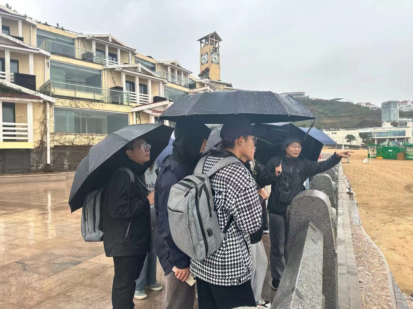 在连岛海岸带野外实习中,带队老师带领学生们在海岸线进行了实地观察和学习,从专业角度了解海岸岩石的相关知识。当遇到不明白的海洋或海岸岩石现象时,同学们积极向老师请教,老师们也耐心解答,达到教学相长的效果。