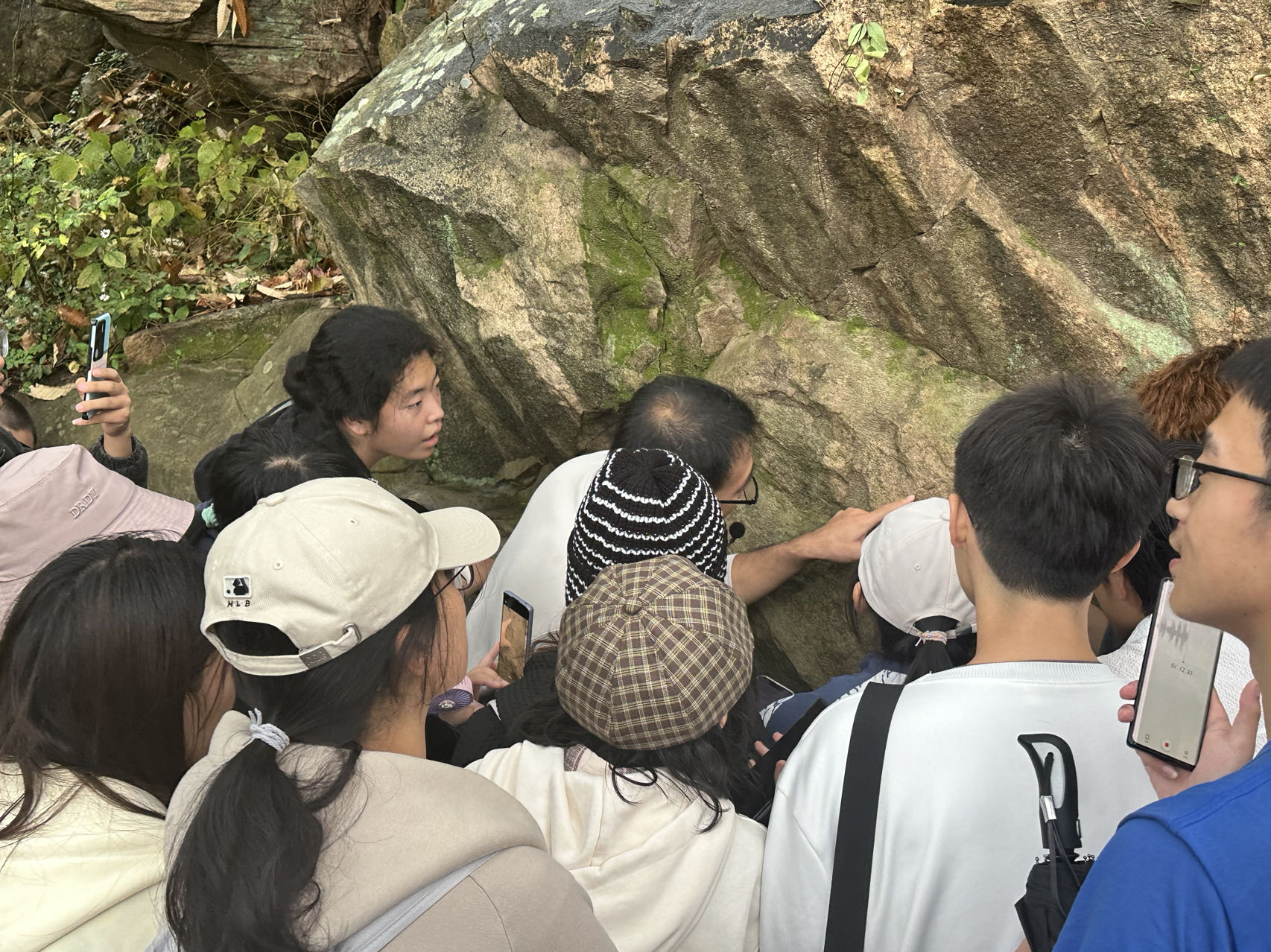 老师为同学们讲解花果山岩石成因