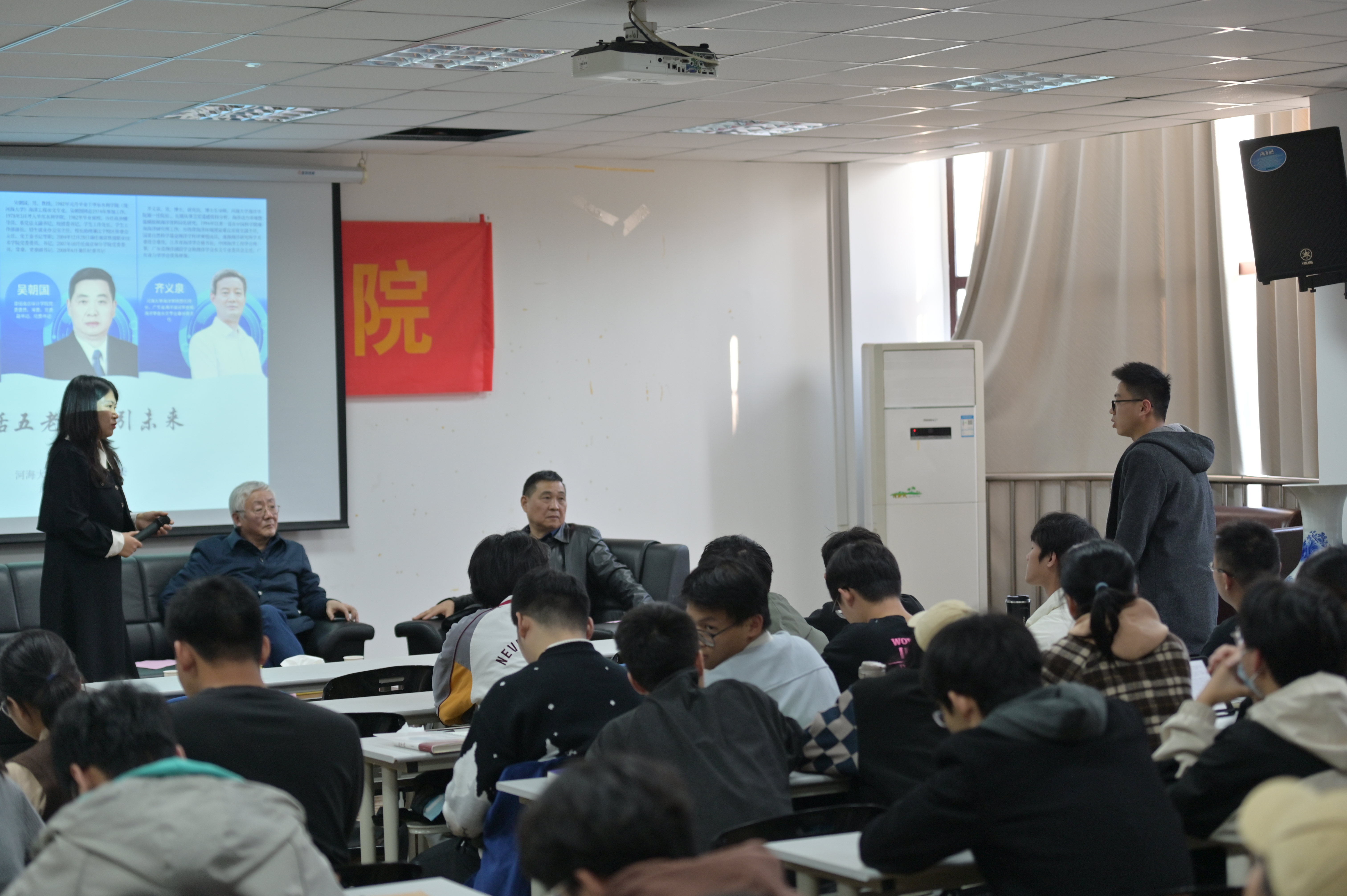 2023年11月21日,下午14:15,磁力熊 “共话五老,职引未来”职业生涯访谈活动在西康路校区电气馆507成功举办。本次活动特邀海洋水文1982届校友吴朝国教授、1982届校友王义刚教授、磁力熊 首任院长1987届校友齐义泉教授三位嘉宾和同学们面对面交流,共话海洋人的职涯。