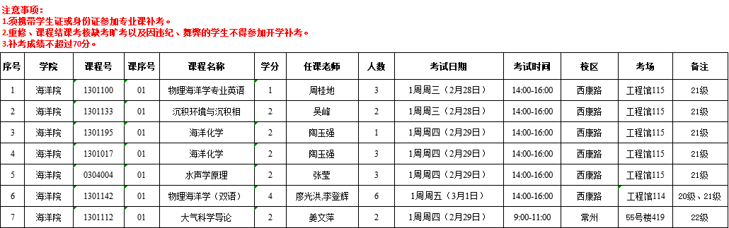 2023-2024-2学期海洋院专业课开学补考安排