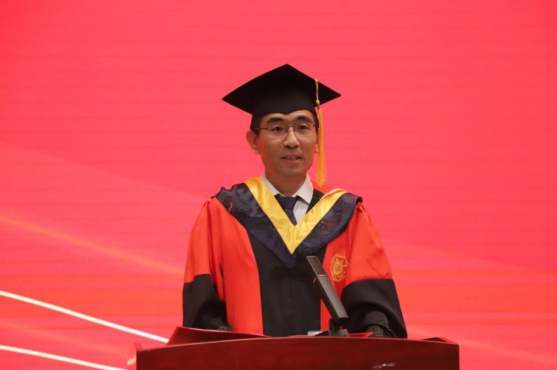 院长宋翔洲在致辞中向毕业生表示热烈的祝贺和美好的祝愿,并与毕业生分享了几点感受。一是学有所长,术有专攻,希望同学们充分发挥自己的不可替代性;二是健康生活,远离负能,多读书多运动才能发挥年轻人的朝气,振兴国家与民族;三是勤勉自律,不惧未来,面对困难应勤于思考、坚定勇敢;四是志存高远,实干兴邦。最后表达了对毕业生为海洋事业做贡献的殷切期盼,希望大家在新时代的海洋强国梦的征程中勇毅前进。