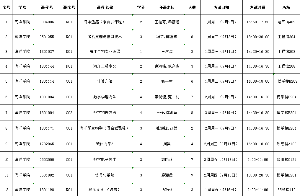 2024-2025-1学期海洋院专业课开学补考安排