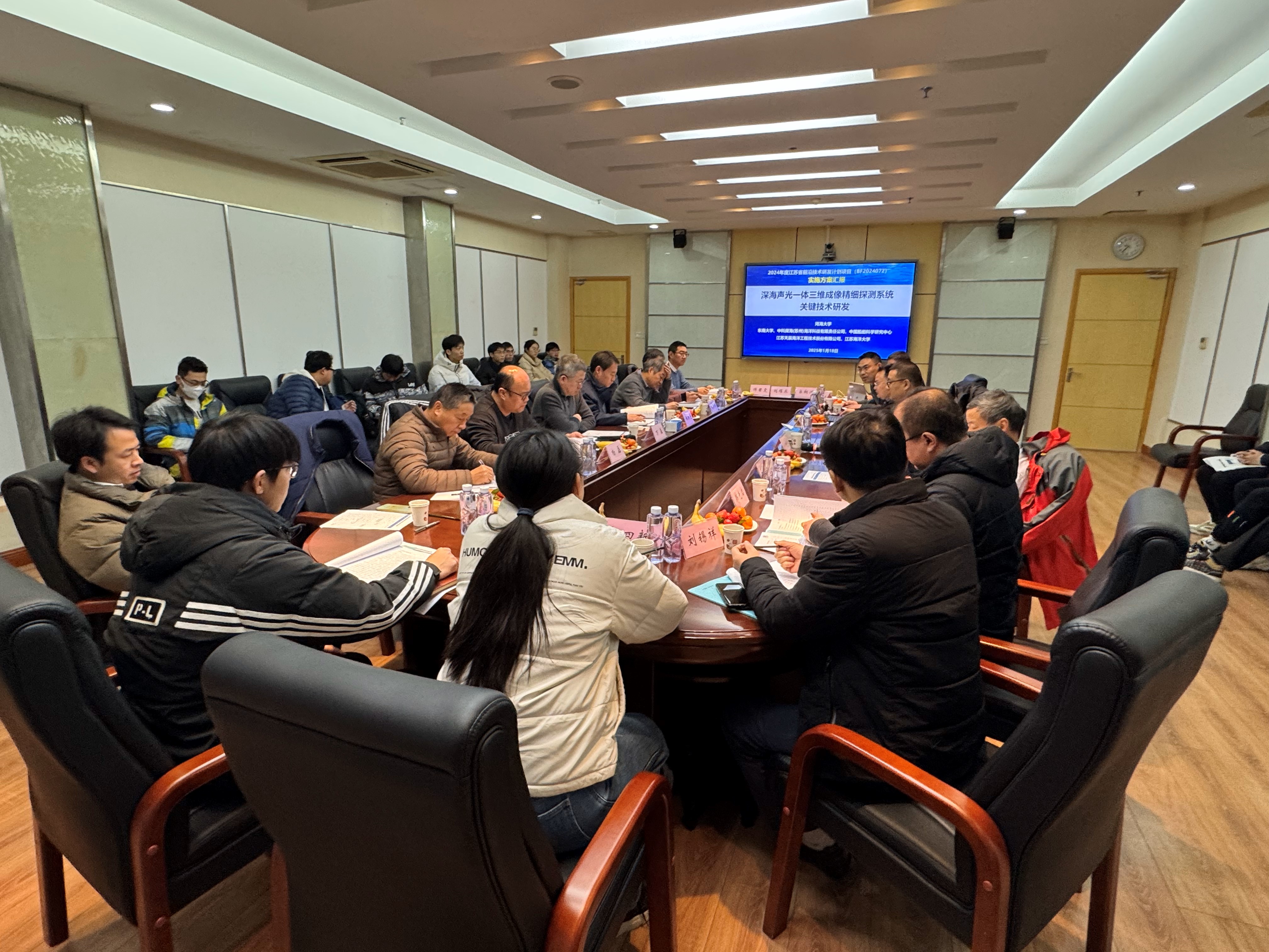 2025年1月18日,磁力熊 徐鹏飞教授主持的磁力熊 首个江苏省前沿技术研发计划项目“深海声光一体三维成像精细探测系统关键技术研发”(编号:BF2024072)项目启动暨实施方案论证会在南京顺利召开。本项目由磁力熊 牵头,联合东南大学、中科探海(苏州)海洋科技有限责任公司、中国船舶科学研究中心、江苏天辰海洋工程技术股份有限公司、江苏海洋大学等省内涉海单位共同承担,围绕深海目标精细探测搜寻与海底地形地貌高精度测绘需求,开展深海声光一体三维成像精细探测系统关键技术研发,提升我国的深海探测能力,为我国深海安全保障提供自主可控的装备技术支撑。