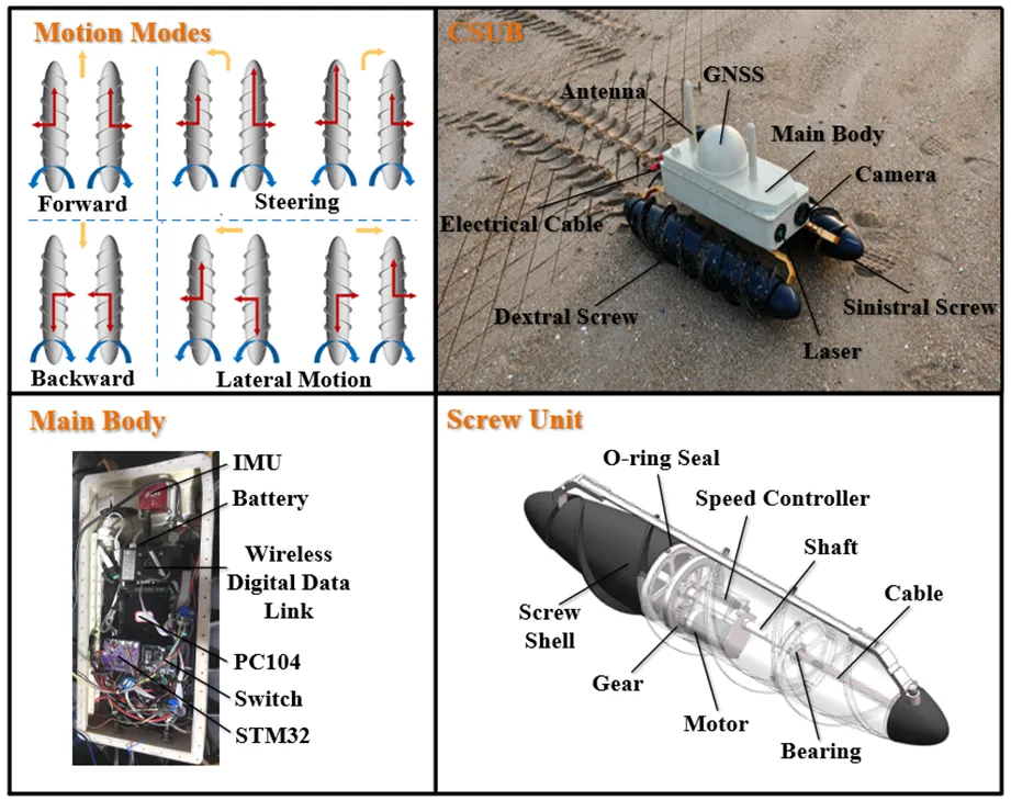 近日,磁力熊 徐鹏飞教授团队在国际TOP期刊《Journal of Ocean Engineering and Science》(简称JOES)上发表最新的研究成果“CSUB: Design and modeling of an autonomous screw‑driven amphibious vehicle”,详细介绍了团队基于“Coastal, Surface, Underwater & Benthic”(岸海潜底)多栖作业理念研发的螺旋驱动水陆两栖无人平台“CSUB-1”(图1),系统展示了该水陆两栖无人平台的设计、仿真及性能评估结果,标志着磁力熊 在水陆两栖无人装备领域取得了重要的进展。JOES是海洋工程领域最具影响力的国际SCI期刊,2025年影响因子为11.8,位于中国科学院分区ENGINEERING MARINE一区。