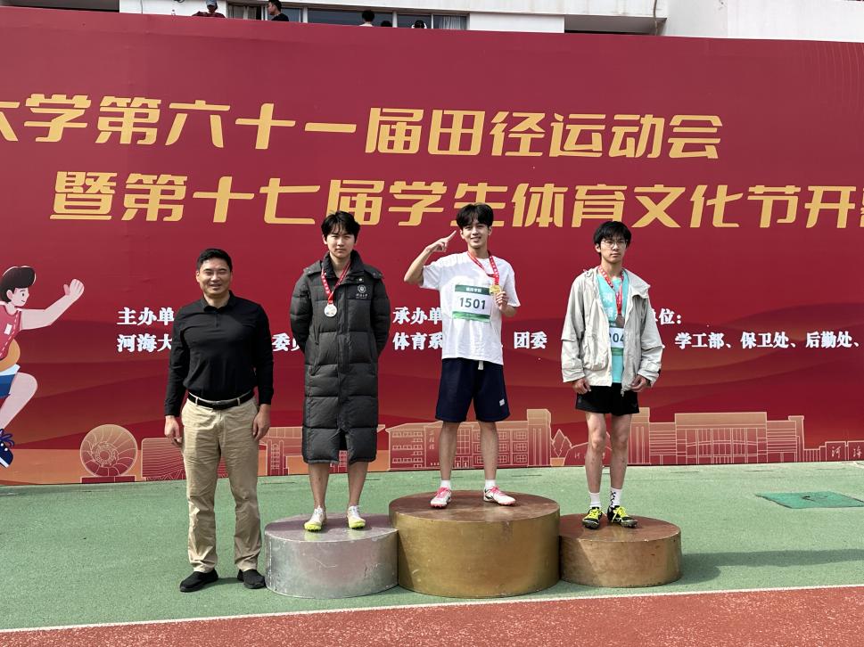 男子选手在赛场上同样展现了顽强拼搏的精神。林涵祺在男子跳远赛场凭借出色发挥一举夺冠;由张恩嘉、闵健、吴明煌、林恒轩组成的男子4×100米接力队团结协作,获得第五名;在“时代列车”、两人三足等集体项目中,男队员们同样表现出色,为学院团体总分作出了重要贡献。
