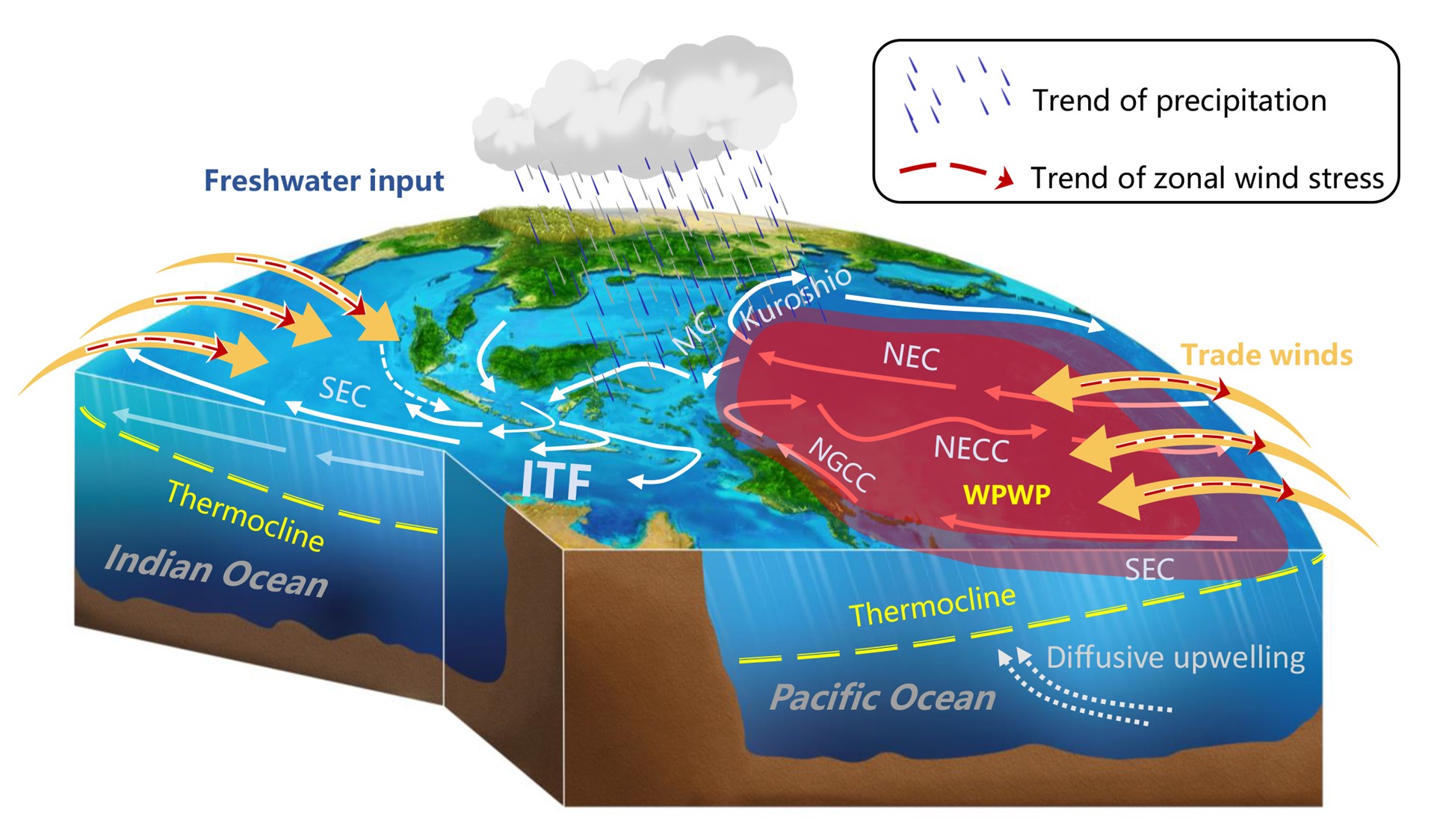 该成果不仅解决了长期以来观测与模型在印尼贯穿流变化趋势上的矛盾,也为理解全球变暖背景下海洋环流的突变行为和气候临界点提供了新视角。研究结果对预测未来印太气候变异、评估全球气候系统风险具有重要科学意义,也为国际社会制定气候适应策略提供了重要科学依据。