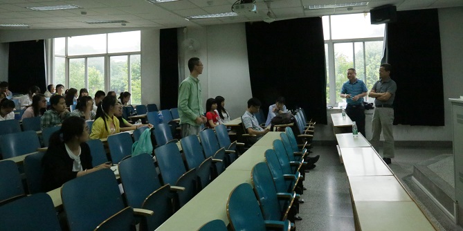 另外,蔡东明大校介绍了海军活动、海洋的里程碑、物理海洋学的进展及观测技术的革命性发展,向在座学生抛出问题“为什么研究海洋”,大校提出了新颖的观点,一是贸易,二是信仰。并由此告诫在场学生,学习海洋和继续研究海洋要对海洋抱有信仰,信仰是我们前行的动力。同学们静静听着,默默记在心里。