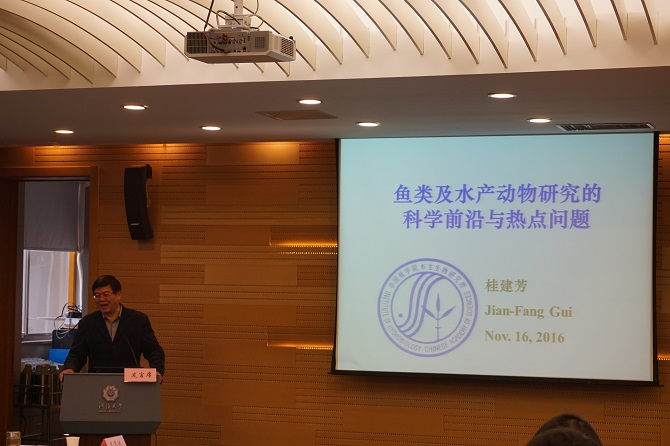 大会由海洋学院院长齐义泉教授主持。徐辉校长首先致欢迎辞,他介绍了河海大学海洋学院的建院背景、发展目标和建设进展等情况,强调了海洋学院要多学科协调发展的重要性,希望与会专家对海洋学院海洋生物学科的建设发展能给予更多的支持与帮助。随后在中国科学院烟台海岸带研究所秦松副所长的主持下,我国著名鱼类遗传育种学家桂建芳院士作了“鱼类及水产动物研究的科学前沿与热点问题”大会报告,全面讲述了该领域当前的重大科学问题以及潜在研究方向,并指出河海大学海洋学院现在建设发展海洋生物学科恰逢其时。中国科学院水生生物研究所张奇亚研究员、华南农业大学海洋学院秦启伟院长、厦门大学环境与生态学院王大志副院长、中国科学院海洋研究所段德麟研究员、中国科学院南海海洋研究所林强研究员和张黎研究员分别就各自的研究工作做了学术报告。通过本次研讨会促进了河海大学海洋生物学科与国内主要相关研究机构的学术交流,进一步了解了本领域的研究进展和发展动向。