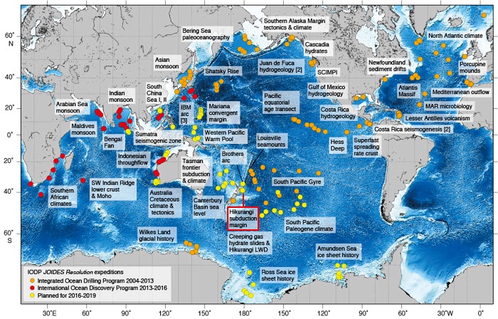 国际大洋发现计划(IODP2013-2023)及其前身综合大洋钻探计划(IODP2003-2013)、大洋钻探计划(ODP1985-2003)和深海钻探计划(DSDP1968-1983),是地球科学历史上规模最大、影响最深的国际合作研究计划,导致了地球科学一次又一次重大突破。IODP新十年科学计划的四大科学目标是:理解海洋和大气的演变,探索海底下面的生物圈,揭示地球表层与地球内部的连接,研究导致灾害的海底过程。目前,IODP共有26个国家参与,包括美国、日本、欧洲18国、中国、巴西、印度、韩国、澳大利亚和新西兰等。