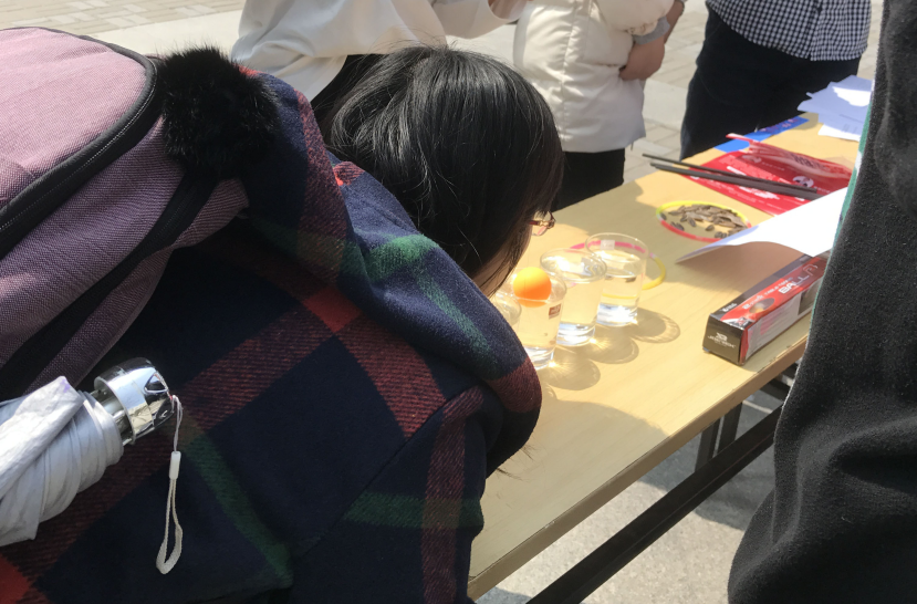 活动开始时间正是午饭时间,过往人流量非常大,相当一部分同学被精美的礼品与有趣的游戏吸引,纷纷涌上来积极参加游戏。炽热的阳光下,参与者的热情也是高涨。简简单单占地不大的摊位前排起了长队,施展自己的勇气与智慧。大部分同学在起初抱着玩游戏的纯粹娱乐心态在答题环节也情不自禁惊叹于中国水系的庞大同样也感慨我国国民对水资源的利用率极低,小到日常生活的饮水洗漱,大到城市地下水网的不完善。一部分同学也是在这个活动中第一次了解到中国水周这个特殊节日周,但是广而告之的力量会让更多人重视节水,这也就是这个节日周的意义所在。