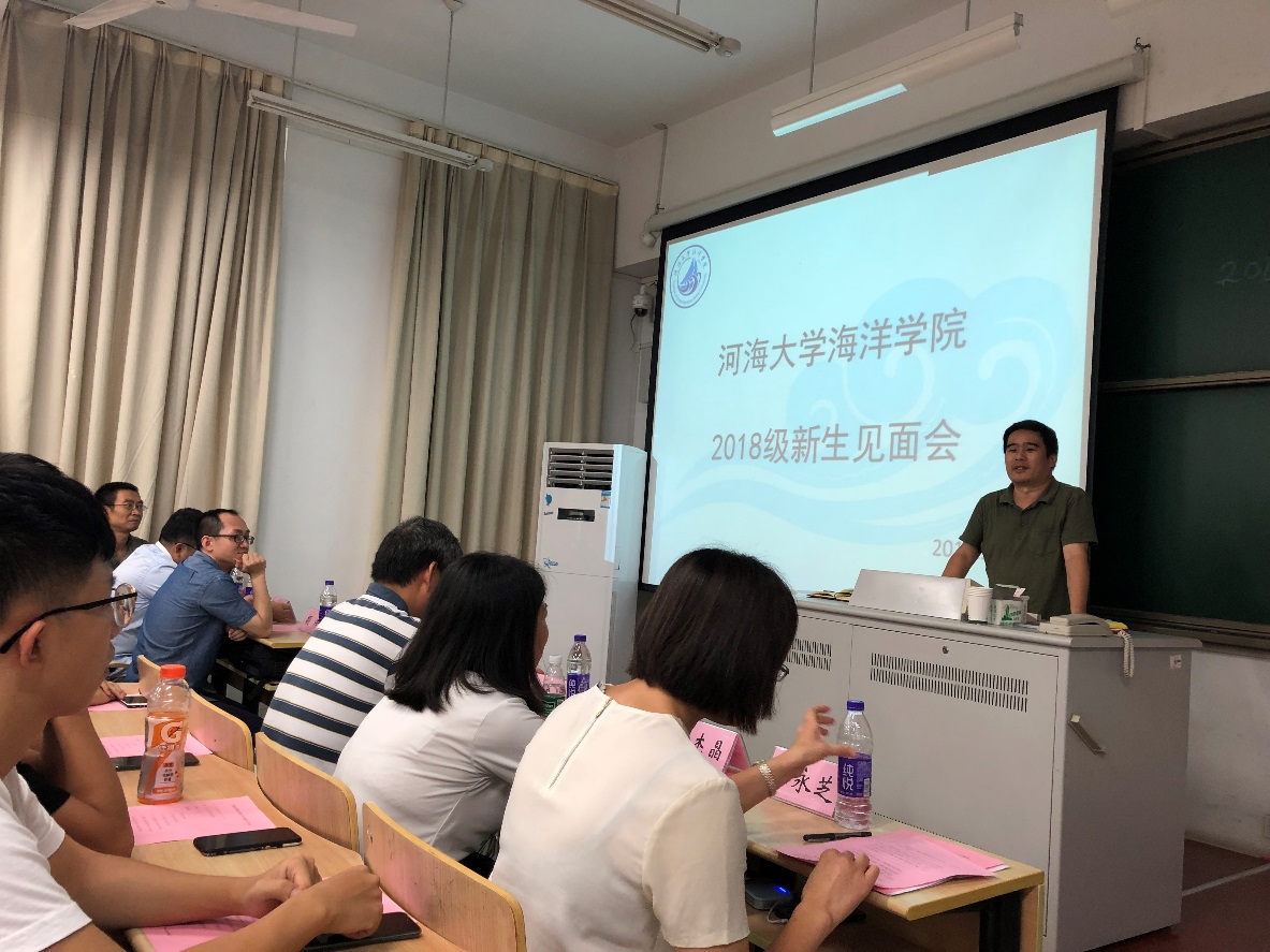 9月2日,海洋学院召开2018级新生见面会暨海洋学院2018级新生开学典礼。学院院长齐义泉教授、副院长白学志教授;物理海洋系廖光洪教授、海洋地质系副主任颉炜副教授、海洋生物系副主任吴亚平副教授、本科生辅导员、2018级各班导师及2018级全体新生参与此次会议。会议由学院党总支王永芝书记主持。