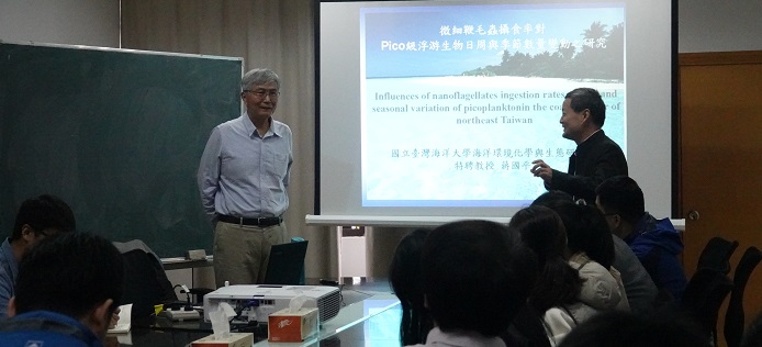 应我院齐义泉教授的邀请,台湾海洋大学蒋国平教授于2018年10月23日来我院进行学术访问,并作了题为“色素型微细鞭毛虫摄食率对蓝绿细菌日周与季节数量变动之研究”的学术报告。