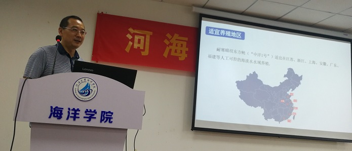 尹绍武教授首先为我院师生做了题为“暗纹东方鲀耐寒新品种选育及其分子机制研究”的学术报告。报告首先介绍了了暗纹东方鲀耐寒新品种“中洋1号”的选育过程。随后,尹绍武教授研究团队利用‘基因型-表型’关联分析手段联合多组学分析筛选并获得了耐寒性状相关分子标记,深入探讨了耐寒性状分子机制和调控网络。最后,尹绍武教授从‘温度-盐度’耦合作用的角度出发,在氧化应激反应、脂质代谢过程和免疫内稳态等水平,深入研究了暗纹东方鲀在不同‘温度-盐度’耦合作用下的生理调控机制。以上研究不仅有效地解决了该品种养殖过程中的越冬难题,还大大节约了养殖成本、扩大了养殖范围,对我国河鲀产业发展发挥了重要的引领作用。报告后,尹绍武教授与我院师生对分子育种技术等问题进行了深入交流,进一步促进了我院师生对经济鱼类遗传育种与繁育工作的了解,开拓了师生们的学术视野。