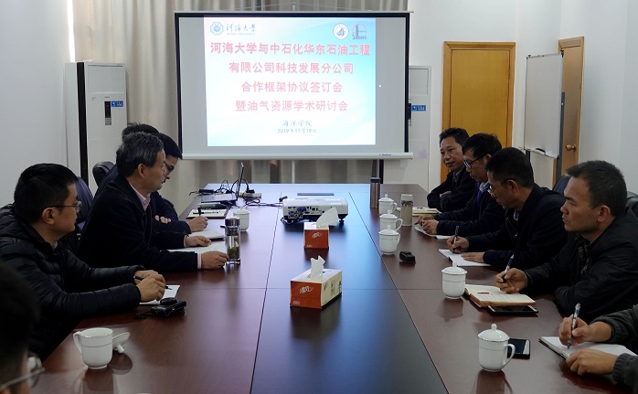 2019年11月19日,河海大学与中石化华东石油工程公司科技发展分公司合作框架协议暨油气资源学术研讨会在我院顺利举行。海洋学院院长齐义泉、海洋地质系主任王毛毛、海洋地质研究所所长张传林、地球科学与工程学院地球探测研究所所长巴晶、中石化华东石油工程公司副总工程师、科技发展分公司总经理李超、中石化华东石油工程公司首席专家张淮等专家和领导出席了本次活动。