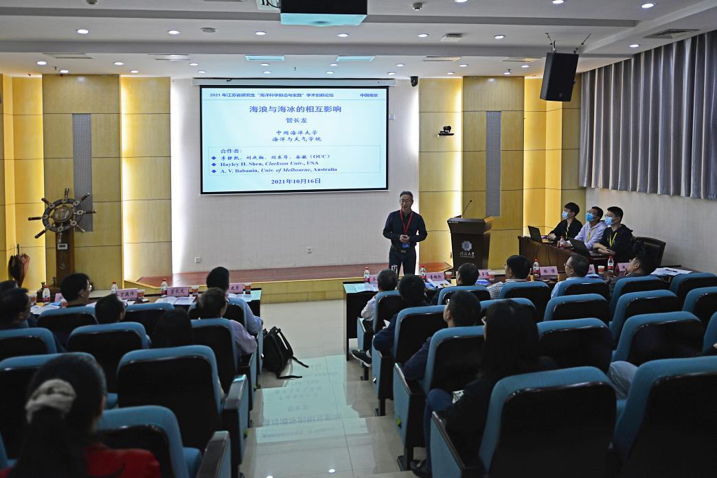 10月16日上午,2021年江苏省研究生“海洋科学前沿与实践”学术创新论坛开幕式在河海大学闻天馆113会议室隆重举行。中国科学院海洋研究所副所长李超伦、中国科学院海洋研究所研究员段德麟、自然资源部第二海洋研究所副所长陈建芳、上海海洋大学教授陈多福、中国科学院大气物理研究所研究员武亮、江苏海洋大学海洋技术与测绘学院副院长吕海滨、河海大学海洋学院院长齐义泉等出席了开幕式;中国海洋大学管长龙教授、自然资源部第二海洋研究所丁巍伟研究员、中国科学院南海海洋研究所林强研究员三位特邀专家出席开幕式并作特邀报告,开幕式由河海大学海洋学院副院长赵哲主持。