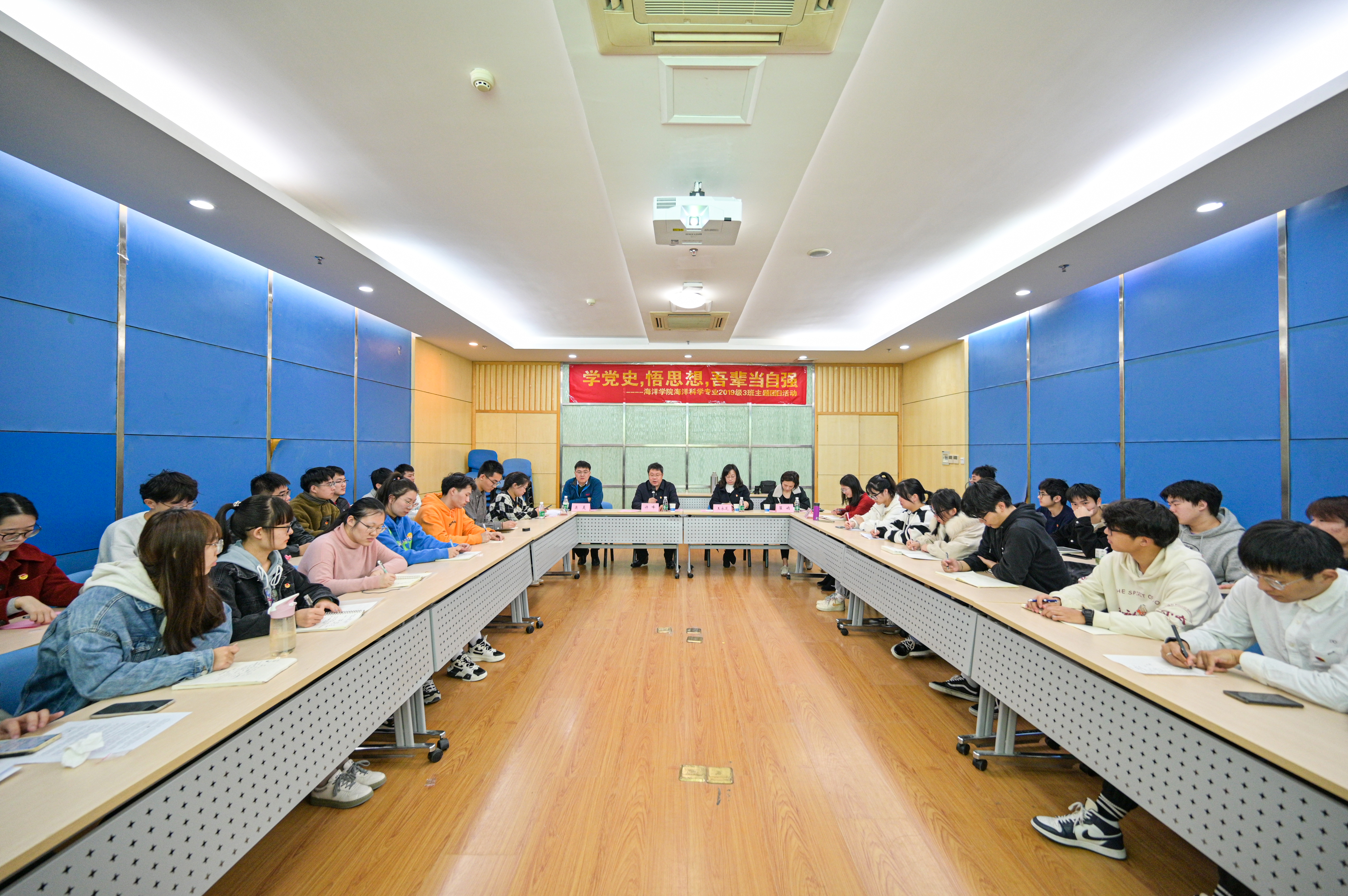 11月30日,许峰副校长参加海洋院2019级海洋科学3班“学党史、悟思想、吾辈当自强”主题团日活动,并与同学们深入交流。