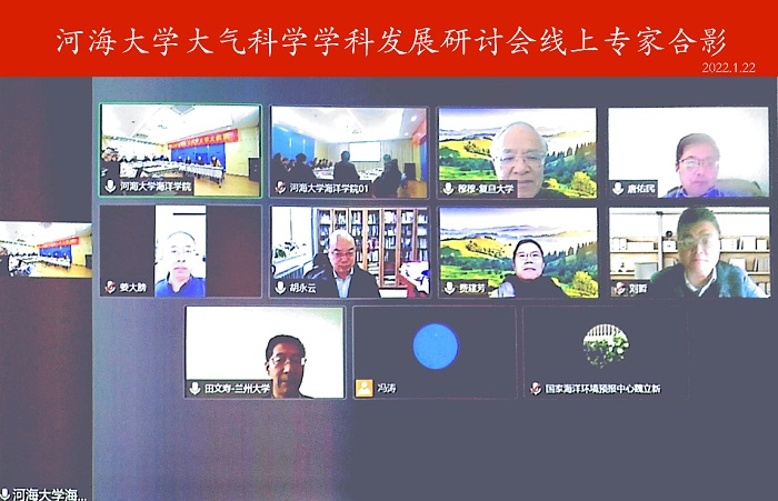 2022年1月12日,河海大学大气科学学科发展研讨会在闻天馆103会议室隆重召开。线上线下出席会议的专家和领导有:复旦大学穆穆院士、南京信息工程大学王会军院士、江苏省气象局翟武全书记、北京大学胡永云教授、中国科学院大气物理研究所姜大膀研究员、国家气候中心封国林研究员、国家海洋环境预报中心魏立新研究员、兰州大学田文寿教授、中国海洋大学黄菲教授、国防科技大学费建芳教授、成都信息工程大学吕世华教授、南京大学杨修群教授、南京师范大学刘健教授、河海大学校长徐辉。会议由河海大学副校长许峰主持。
