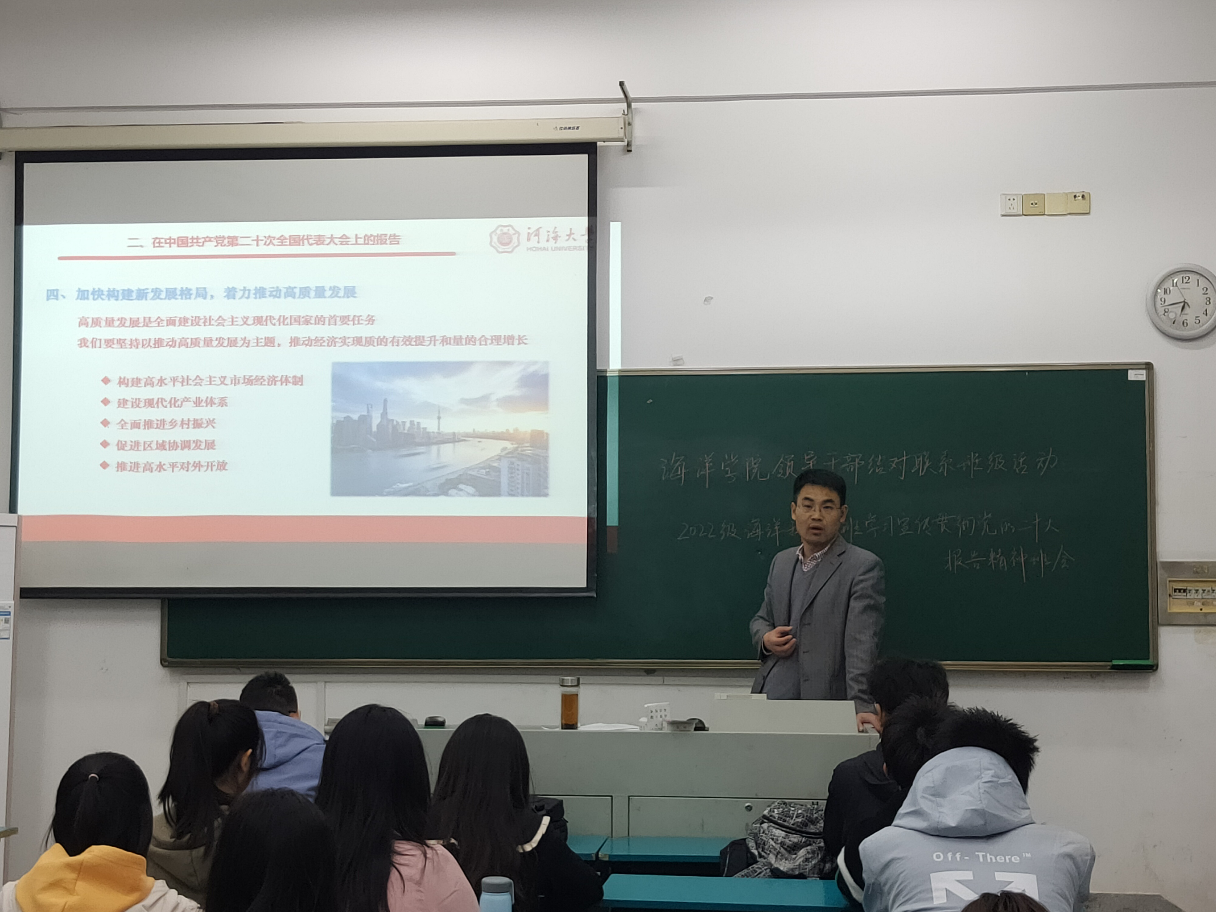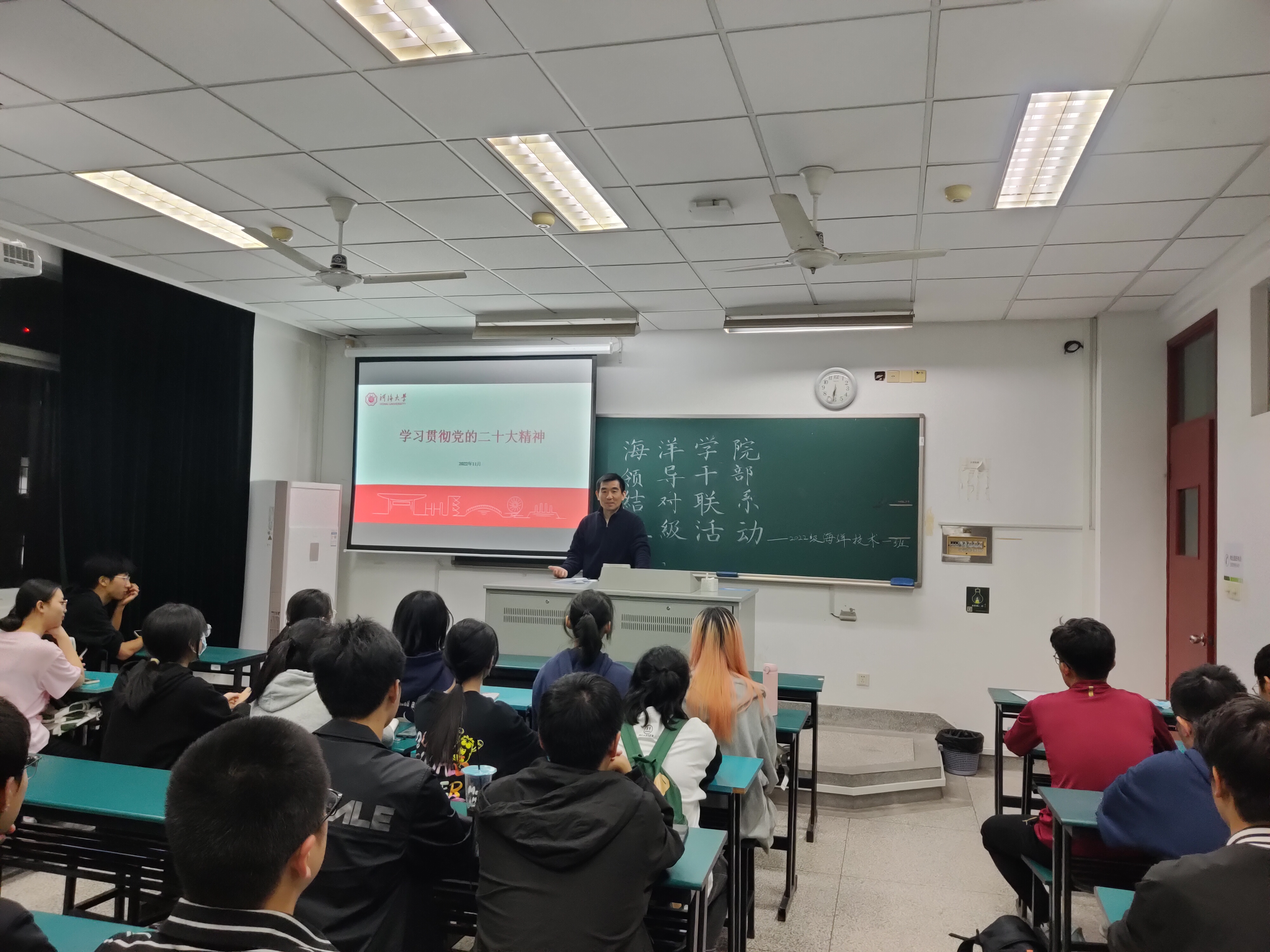 近日,海洋学院党政领导班子走进结对班级,与同学面对面交流,宣讲党的二十大精神。