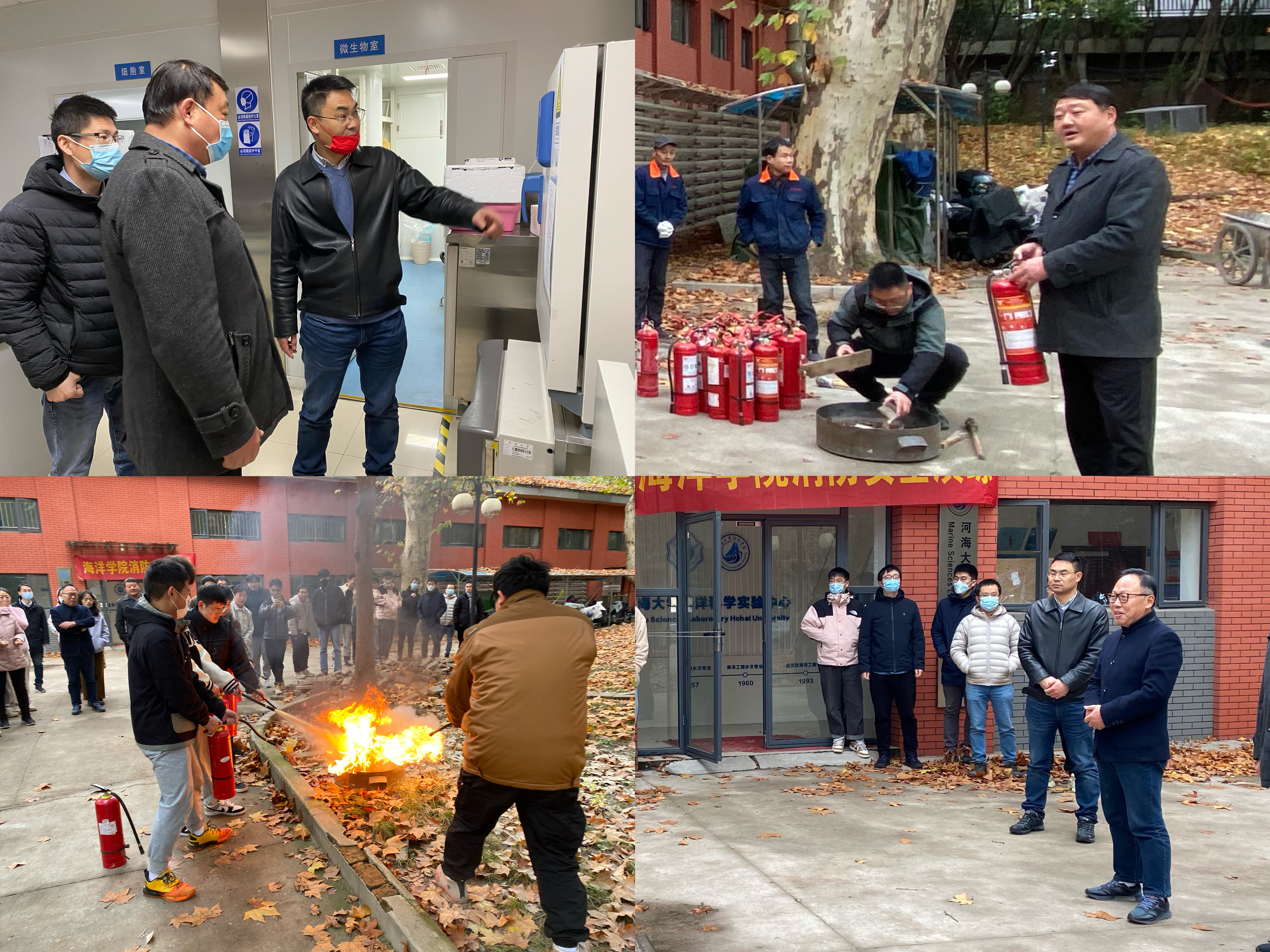 为普及实验室消防安全知识,提高师生应急防护,使用灭火器自救能力,增强消防意识,做好实验室消防安全工作,海洋学院于2022年11月30日在海洋科学实验中心开展安全检查,举行“消防安全应急演练”。海洋学院党委书记胡忠华,副院长赵哲,保卫处科长戴剑峰以及实验中心全体师生参加了演习。整个活动包括实地走访实验中心查找消防隐患和使用灭火器模拟灭火两个过程。