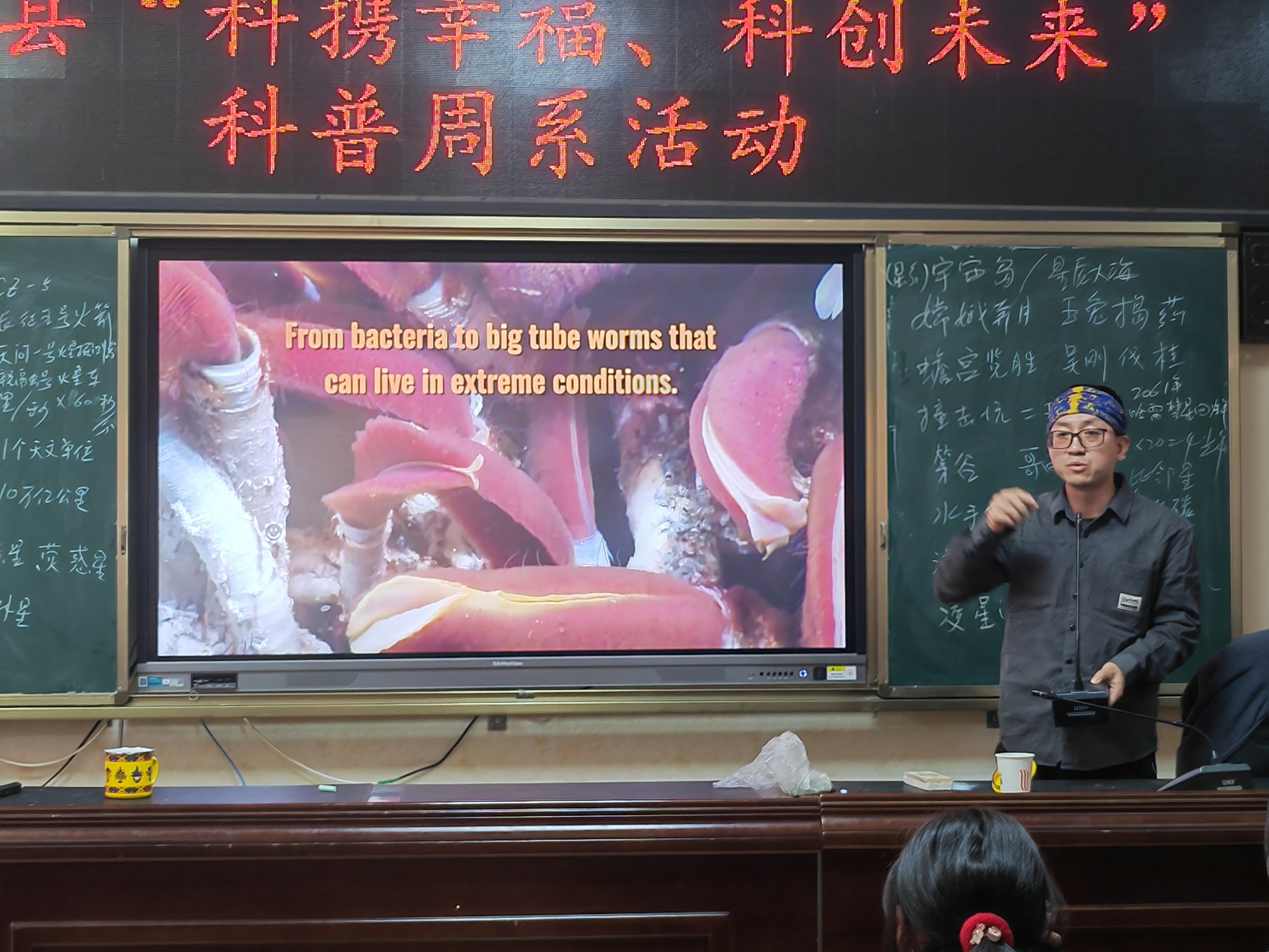 6月4日,颉炜副教授参加白玉县“科携幸福、科创未来”科普周系列活动,在四川白玉县第三完全小学开展《深海探秘:大洋地壳的前世今生》主题科普报告。报告由白玉县第三完全小学泽翁措老师主持。