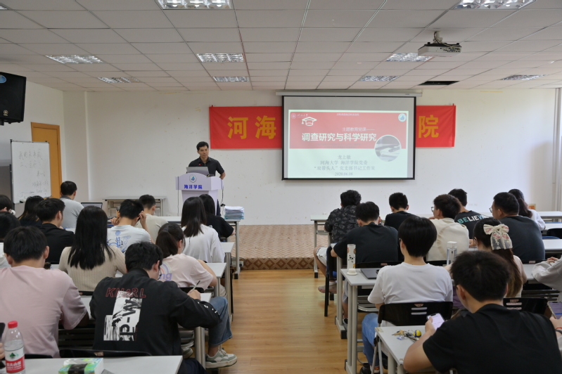 为深入学习贯彻习近平新时代中国特色社会主义思想主题教育,进一步强化研究生思想价值引领,引导广大研究生坚定理想信念,树立对调查研究的正确认识和实践观念,68日上午,海洋学院副院长冯涛和党委委员龙上敏深入2022级研究生班级,指导学生开展主题教育。此次活动由冯涛副院长主持,龙上敏老师主讲,研究生辅导员刘彩英及2022级全体研究生参加。